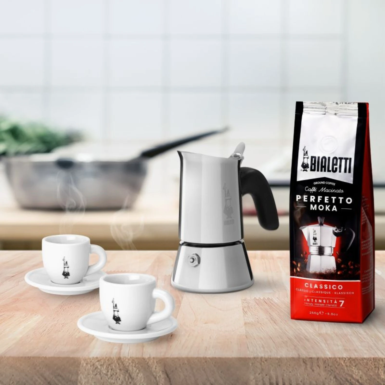 Met de Bialetti Venus 4 kops zet je in slechts enkele minuten een volle en aromatische espresso, precies zoals in Italië. Dit model is geschikt voor vier kleine Italiaanse espresso’s, wat neerkomt op ongeveer twee kopjes in onze Nederlandse maat. Perfect voor een rustig koffiemoment of om te delen.