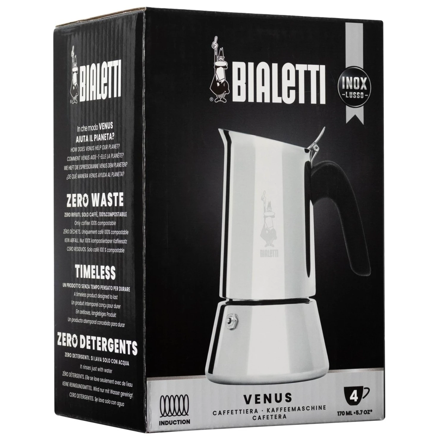 De Venus is gemaakt van hoogwaardig roestvrij staal, een stijlvol en duurzaam alternatief voor de klassieke aluminium Moka Express. Het materiaal blijft mooi van kleur, is bestand tegen intensief gebruik en geschikt voor alle warmtebronnen, inclusief inductie. Zo past dit model in elke moderne keuken.
