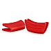 Die kirschroten Silikongriffe halten Temperaturen von bis zu 250 °C stand. Nach dem Gebrauch können sie auch in der Spülmaschine gereinigt werden.