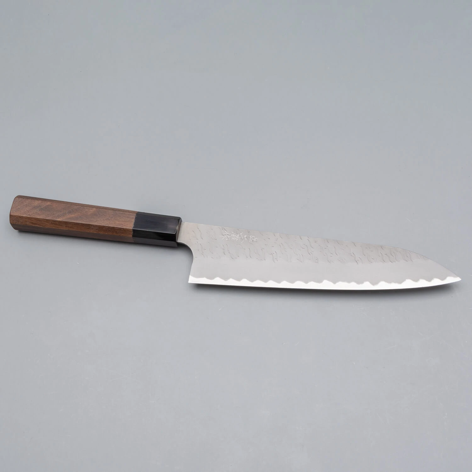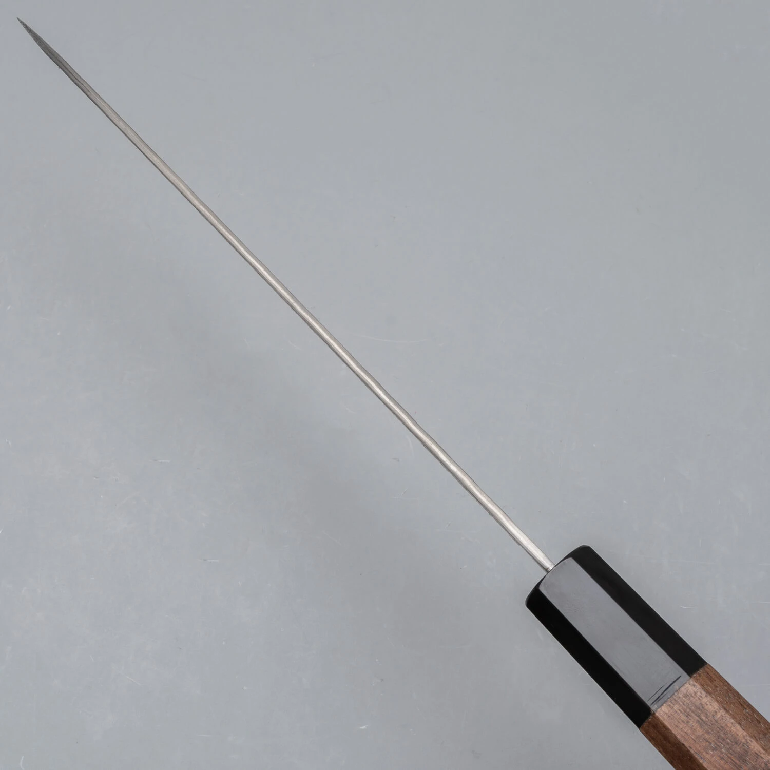 Das Messer hat einen achteckigen Griff aus Nussbaumholz mit eine Zwinge aus Horn. Ein besonderes Messer für den begeisterten (Hobby-)Koch, der einzigartige Messer liebt.