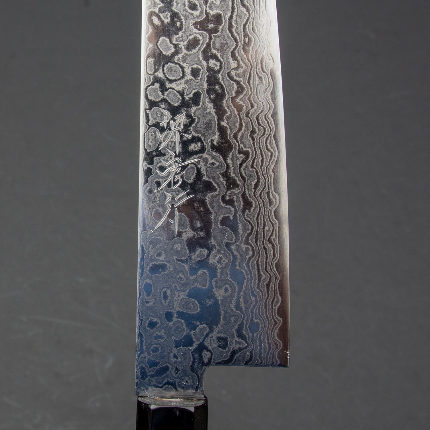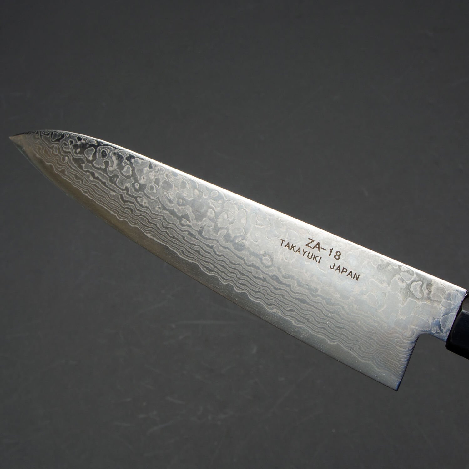 Der Sakai Takayuki Ginga ist eine besondere Serie. Das Messer zeichnet sich durch seine 68 mattierten Damastlagen und die spiegelglänzende Oberfläche. Aber nicht nur das Design ist besonders, das Messer ist aus ZA-18 Stahl gefertigt. Ein harter Stahl, ähnlich dem VG-10, nur etwas härter (61-62 HRC). Dadurch bleibt dieses Messer länger scharf als die durchschnittlichen japanischen Messer.