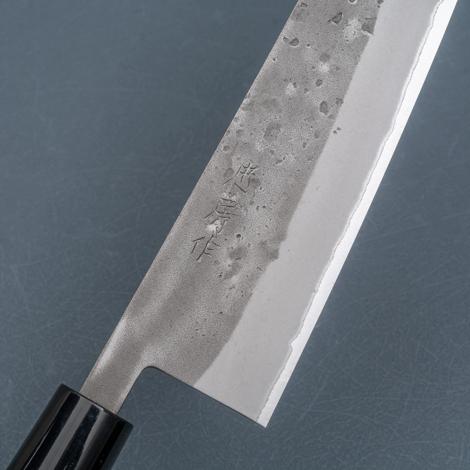 Die Serie aogami 2 von Tadafusa zeichnet sich durch ihre raue Oberfläche aus. Die Klinge hat ein Nashiji-Finish (japanisches Wort für die Schale einer Birne), die unpoliert ist. Dies verleiht dem Messer ein besonderes Design, besonders in Kombination mit dem Griff aus Bubinga-Holz.