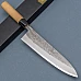 Der Griff ist aus Kastanienholz gefertigt. Das Holz wurde wärmebehandelt und ist dadurch resistent gegen Feuchtigkeit, Wasser und hohe Temperaturen. Der Griff ist japoniert und auch länger als die meisten japanischen Messer. Bequem zu benutzen, auch mit großen Händen.