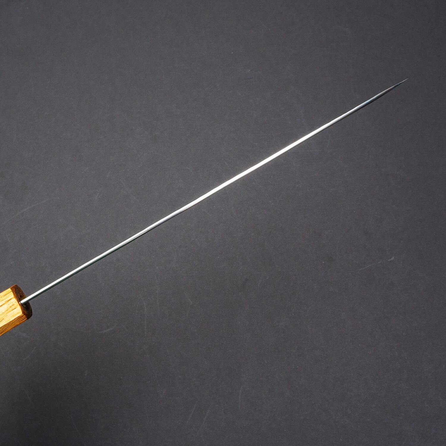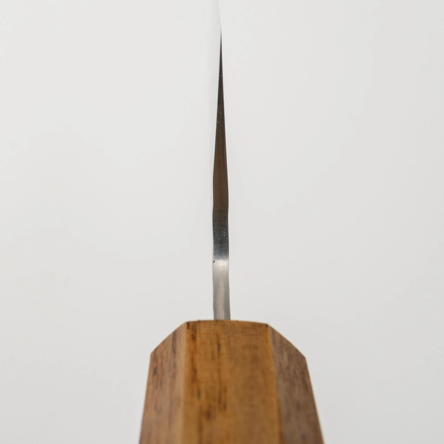 Diese Version von Senko ist mit einem Griff aus lackiertem Eichenholz in Form eines Achtecks (Octagon) versehen. Diese traditionelle Form bietet den besten Halt beim Schneiden, auch mit nassen Händen.