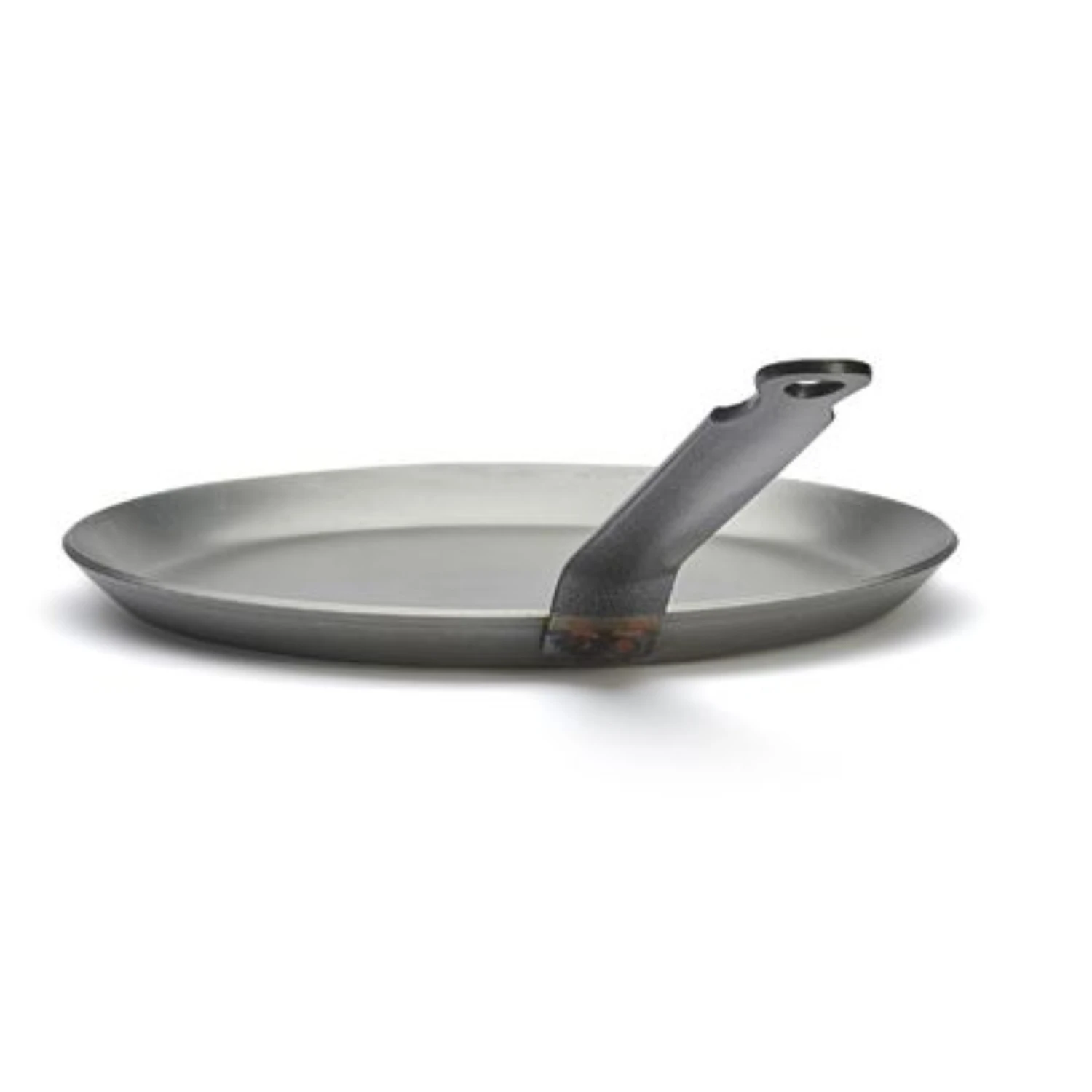 Deze kleine crêpepan is door de platte bodem en lage rand uitstekend geschikt voor het maken van kleine crêpes, pannenkoekjes, omeletjes, of een gebakken ei. Met eeen doorsnee van 20cm is deze plaatstalen crepepan goed hanteerbaar, zeker ook wat betreft het gewicht. De Buyer pannen zijn bestand tegen hoge temperaturen en hebben een fantastische warmteverdeling.