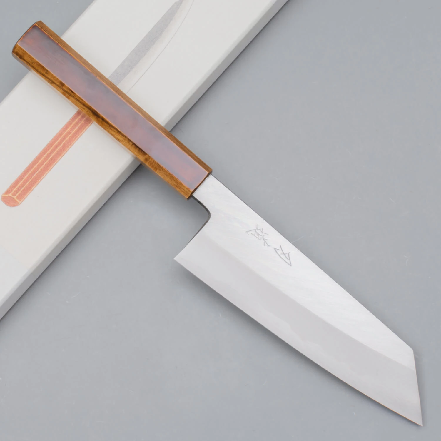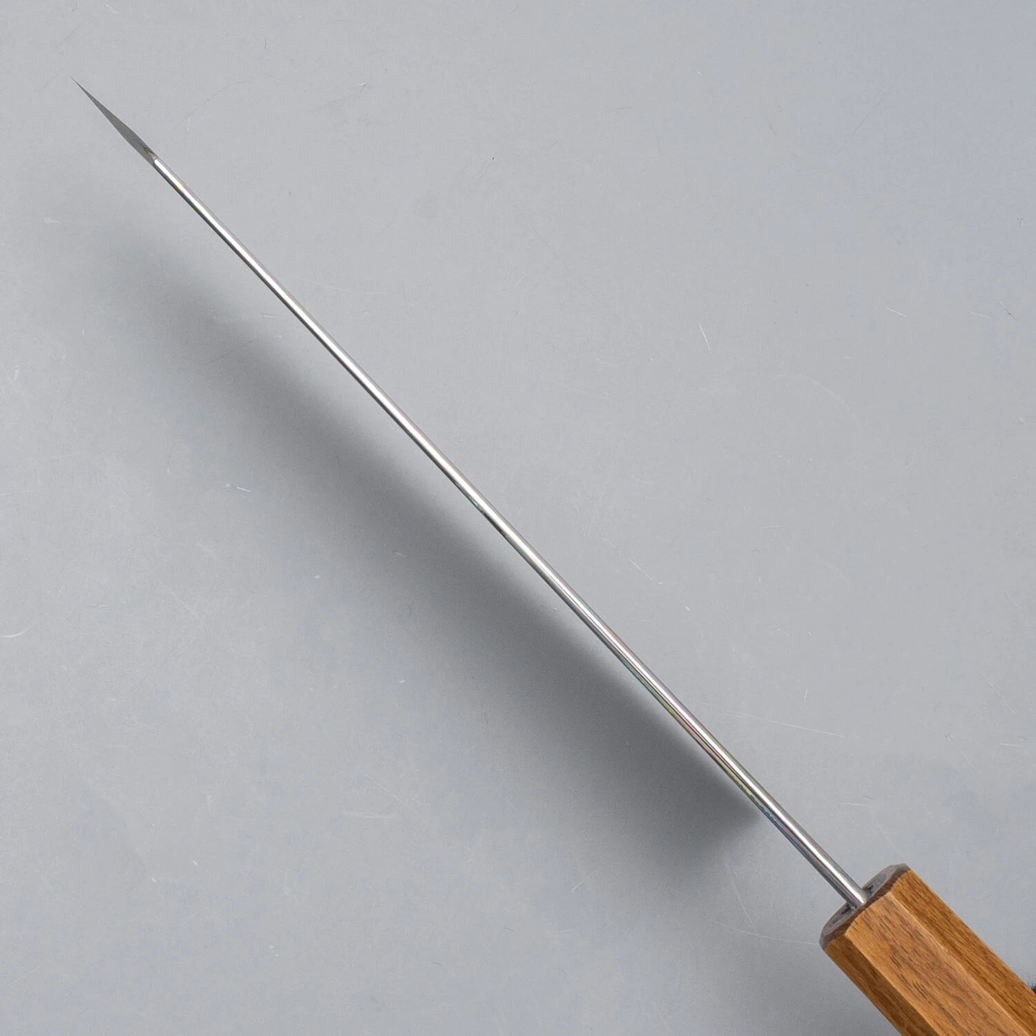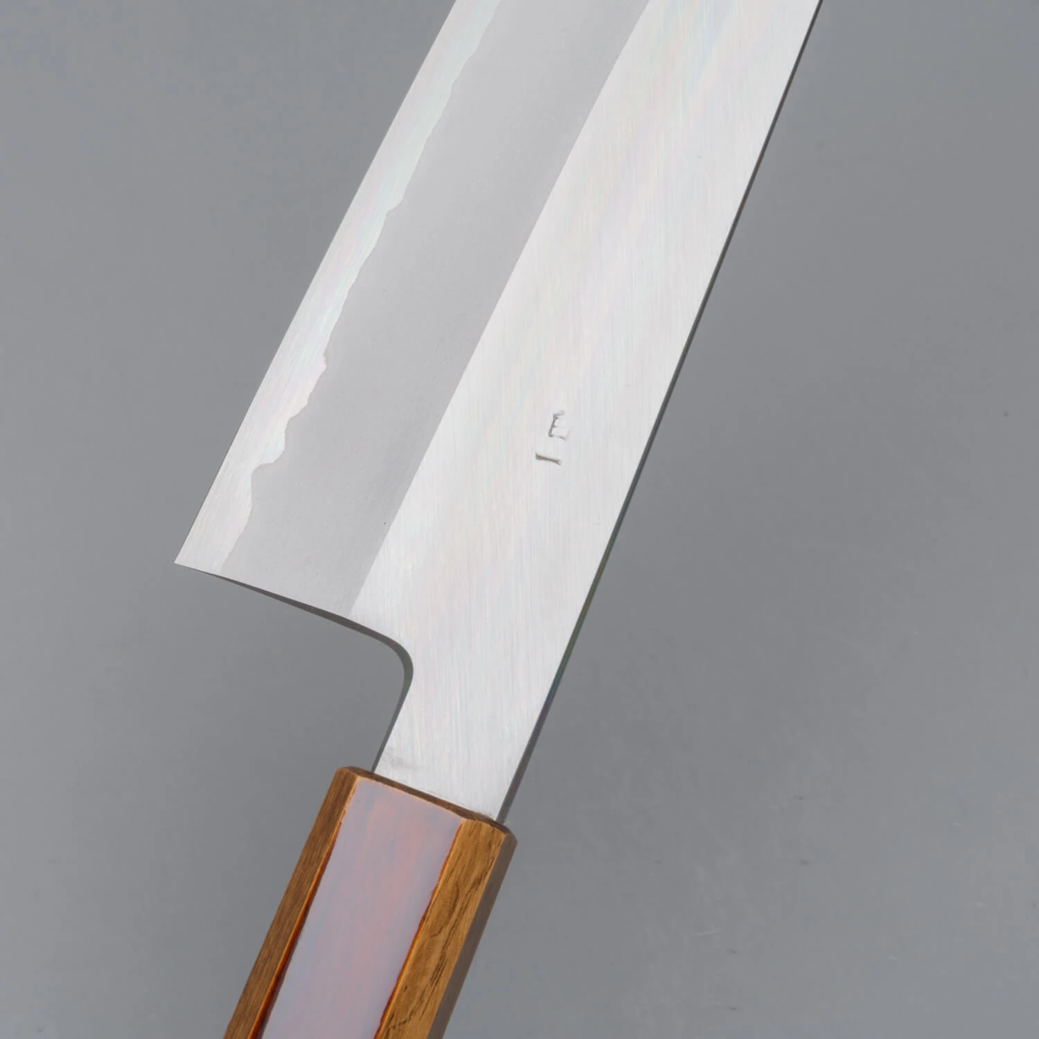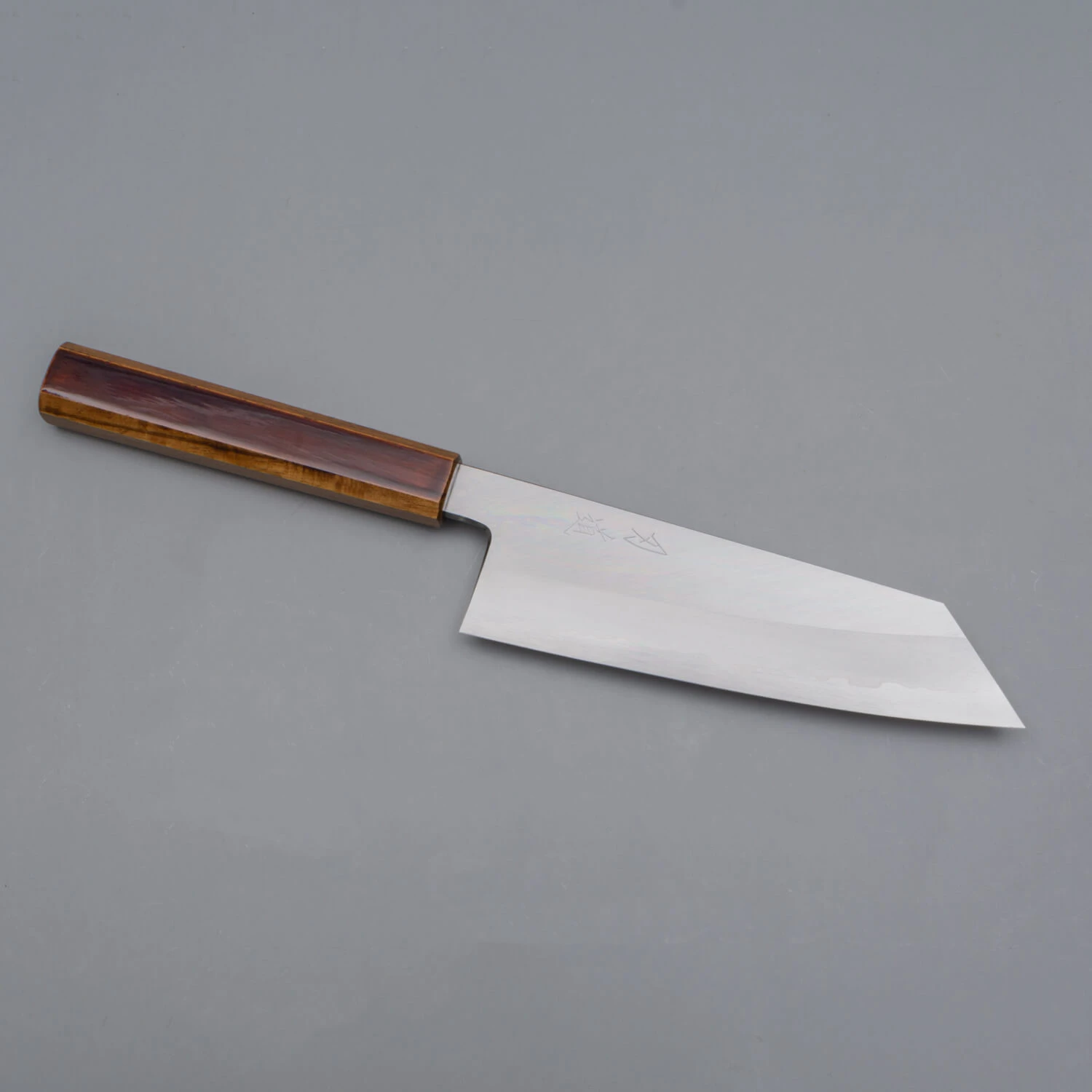 The oak handle has a traditional octagonal shape that provides a good grip, even with wet hands. Thanks to the special Urushi lacquer coating, the knife looks super-luxurious