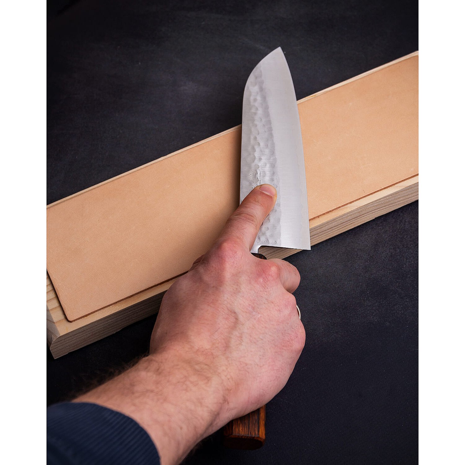 Its exquisitely soft and smooth leather provides unparalleled feedback. The unique Ho wooden base is designed for convenient deburring, ensuring your blades are in top condition. Handmade in Sanjo Niigata, this strop is a must-have for anyone seeking precise edge maintenance. Ideal for both knives and razors.