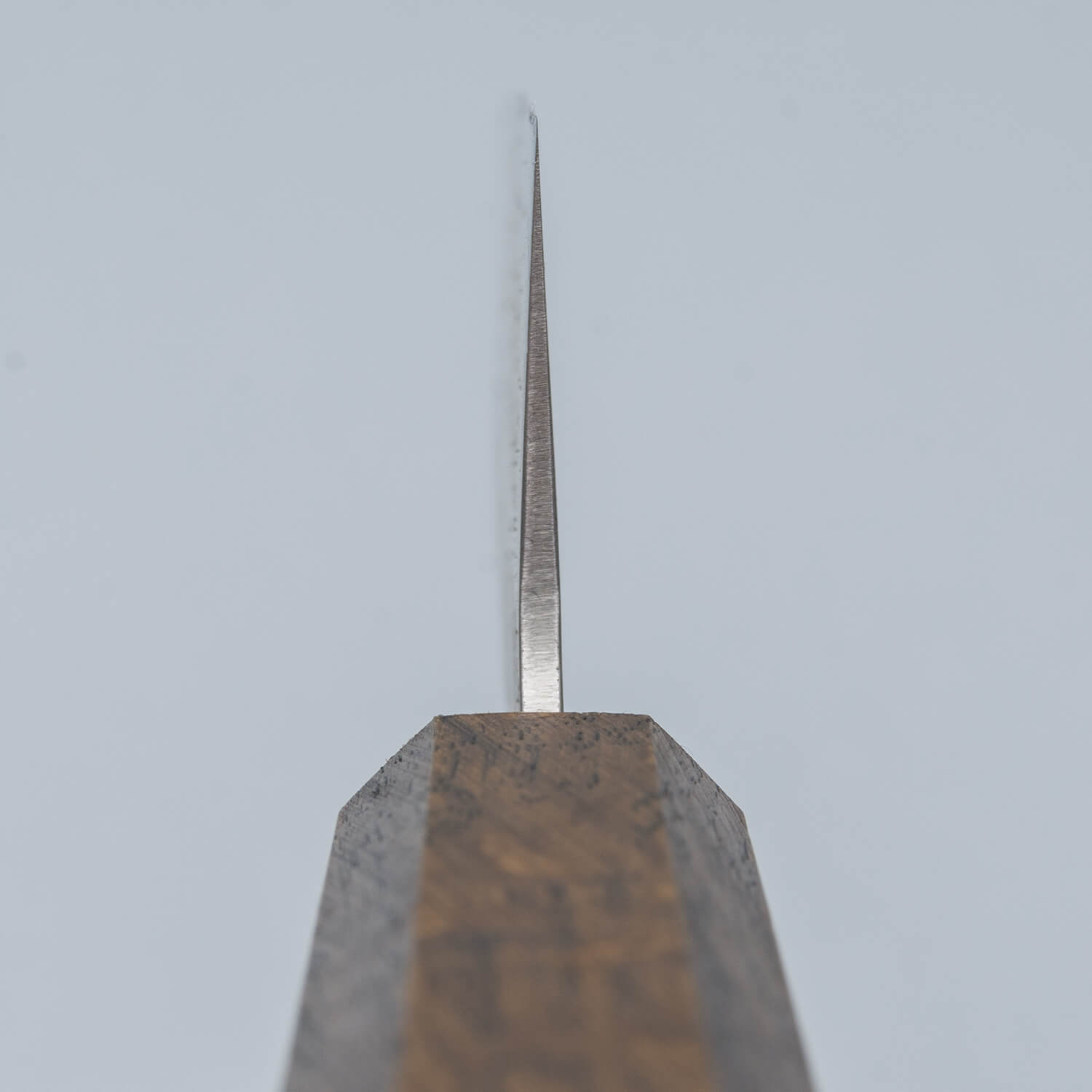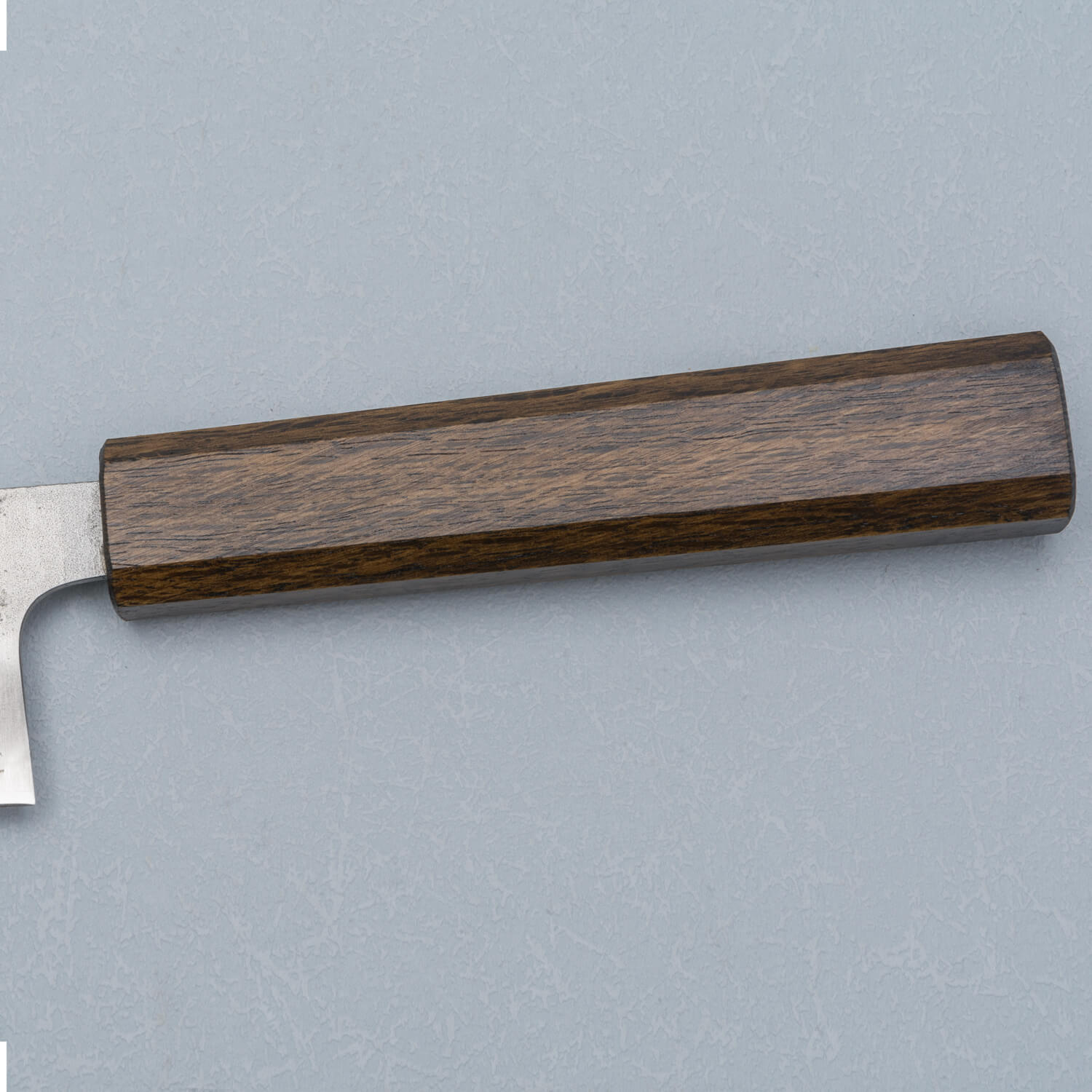 The knife is made of GinSan stainless steel which is simple to maintain and easier to sharpen than VG10 steel. That slightly rougher finish keeps the knife's price low and gives it character.