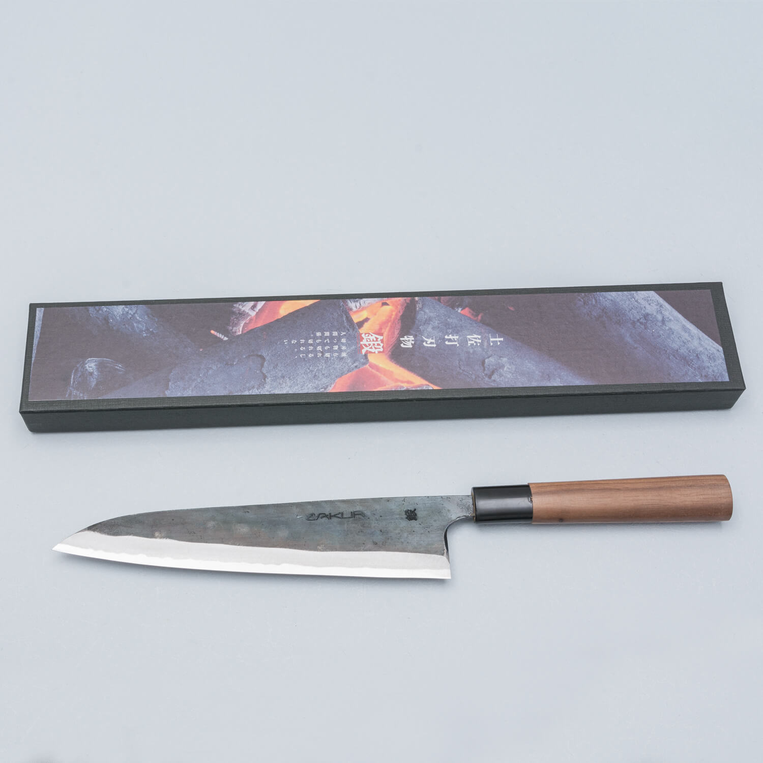 Raw carbon steel knife from Tosa, Japan. Zakuri knives are forged by Michikuni Tokaji from Aogami Super steel.