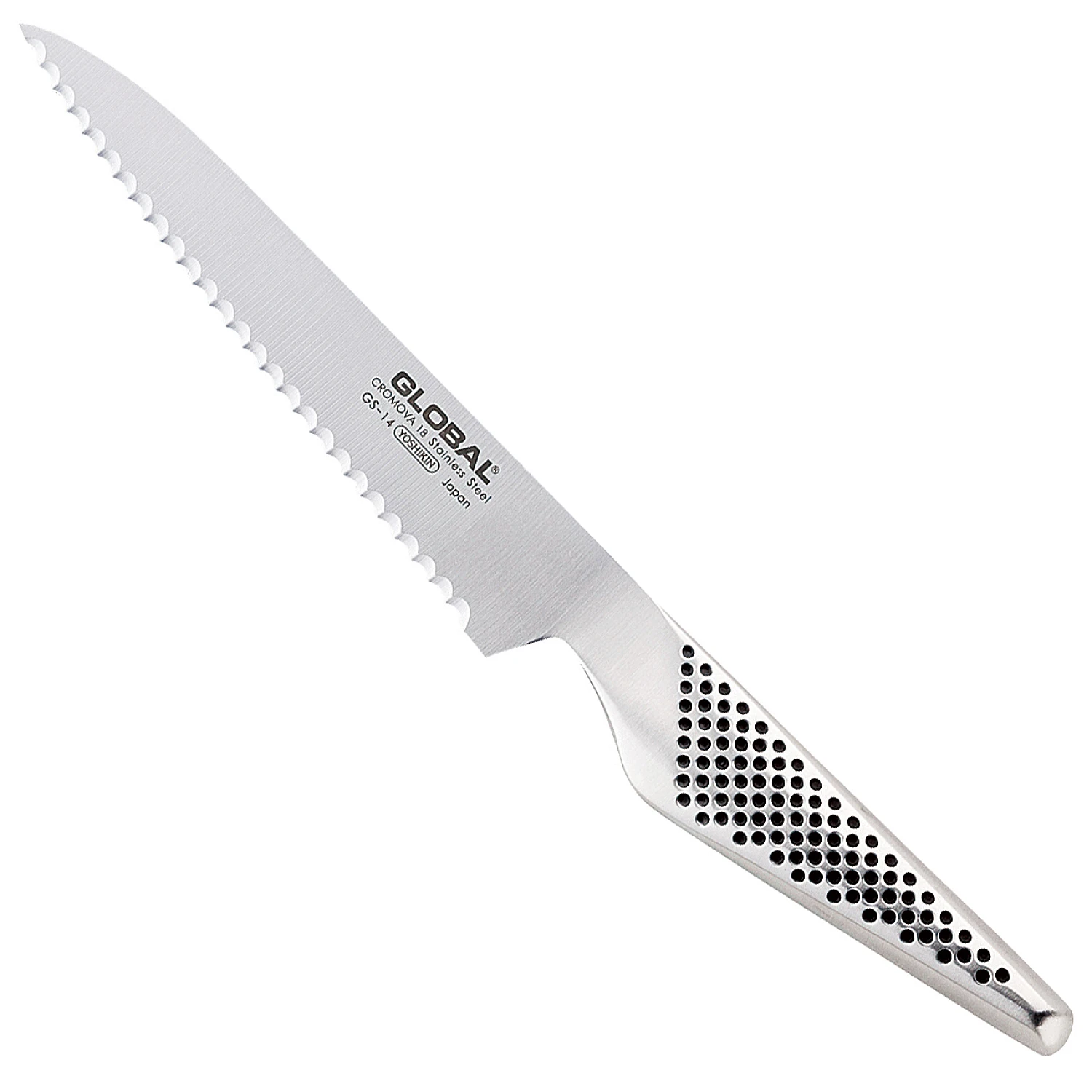 Dit Global mes heeft een grof gekarteld lemmet en valt voor meerdere doeleinden te gebruiken. Het mes is zowel rechts- als linkshandig te gebruiken.