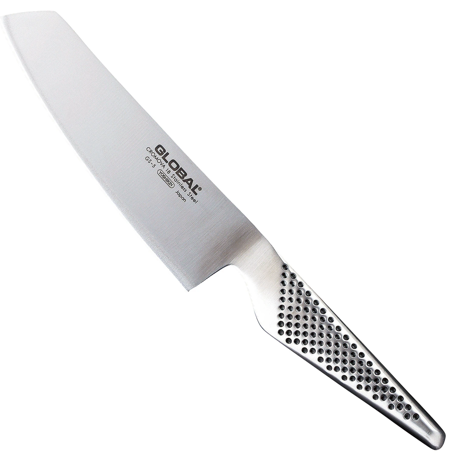 de Global Gs5 is een ideaal groentenmes voor het snijden van vlees en groenten.
