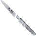 Dit Global mes wordt gebruikt voor het schillen van fruit en groenten. Het mes is zowel rechts- als linkshandig te gebruiken.
