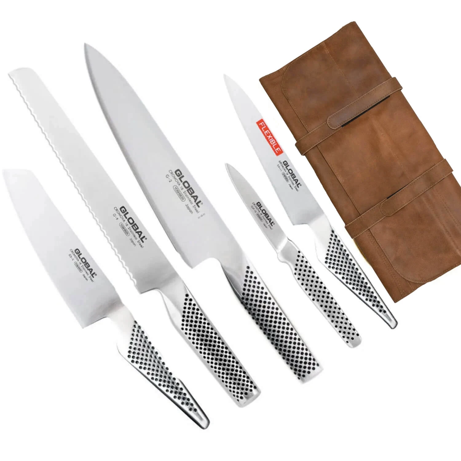 Heb je altijd al een Global messenset willen hebben? Dan hebben we hier een speciale setprijs voor je. Deze set bestaat uit 5 Global messen en een luxe messentas van hoogwaardig bruin leer. Met deze set wordt het voorbereiden van je maaltijd een pretje. Deze set is alleen bij ons voor deze prijs te koop. Wees er snel bij want ze zijn beperkt beschikbaar.