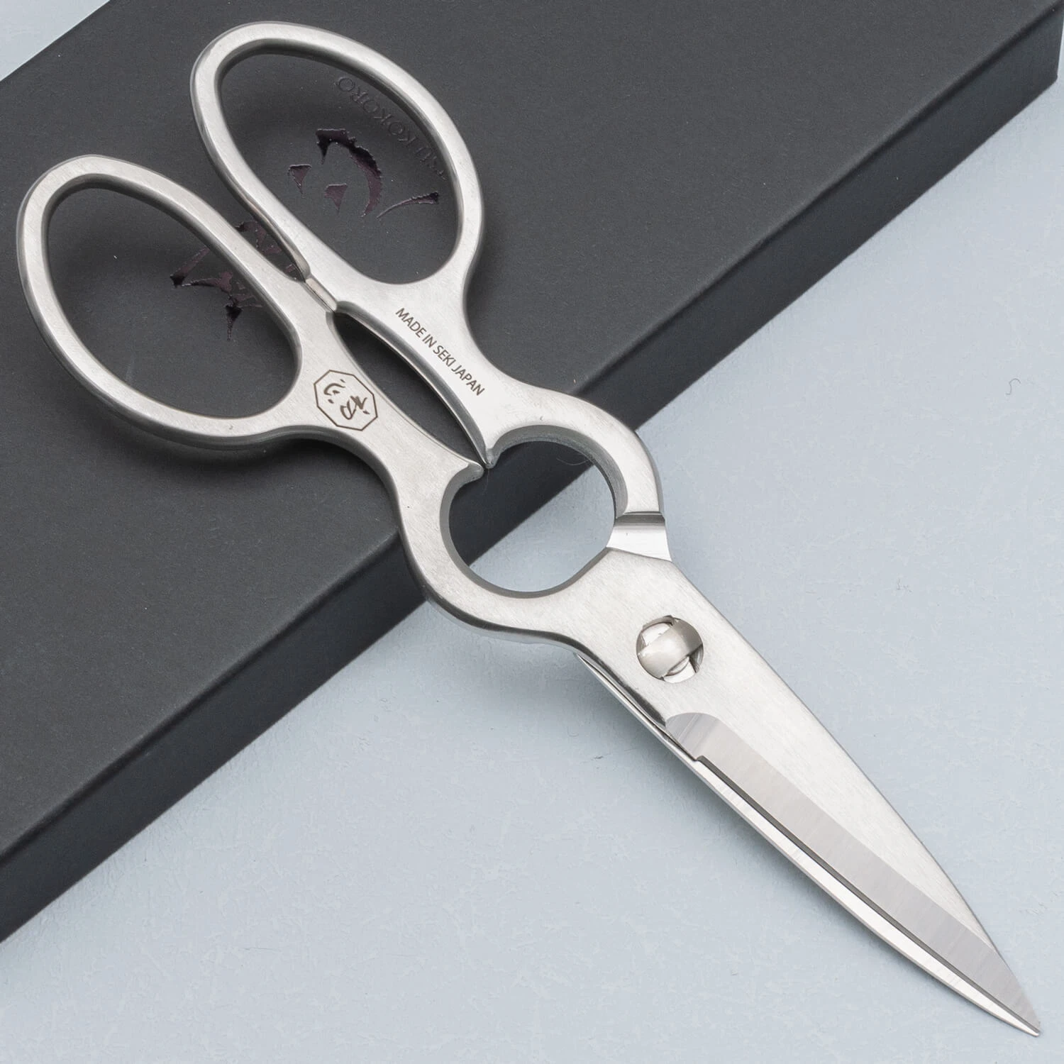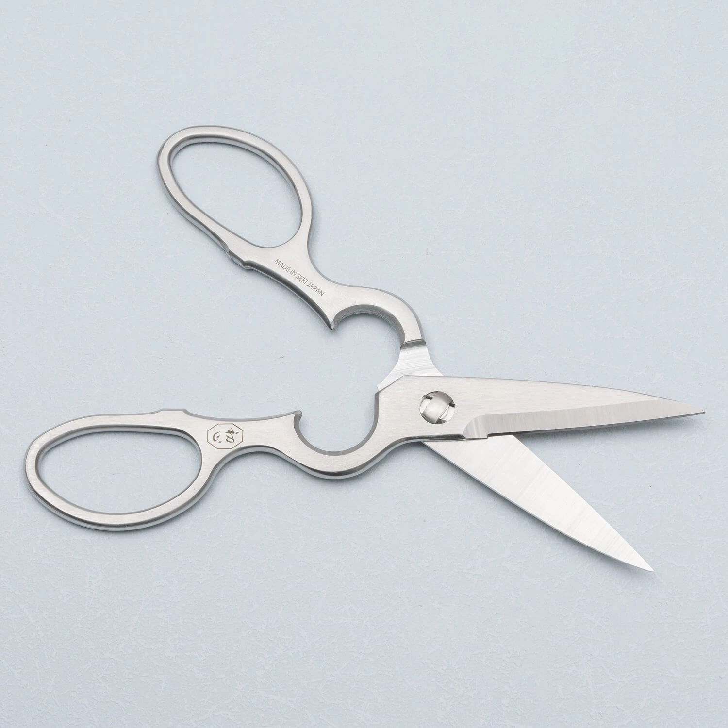 Een stevige maar toch slanke keukenschaar van Hatsukokoro. Volledig gemaakt van roestvrijstaal en toch vrij licht van gewicht. De schaar is eenvoudig in- en uit elkaar te halen zodat je hem goed kan schoonmaken. Het middenstuk kun je gebruiken voor het openen van doppen.