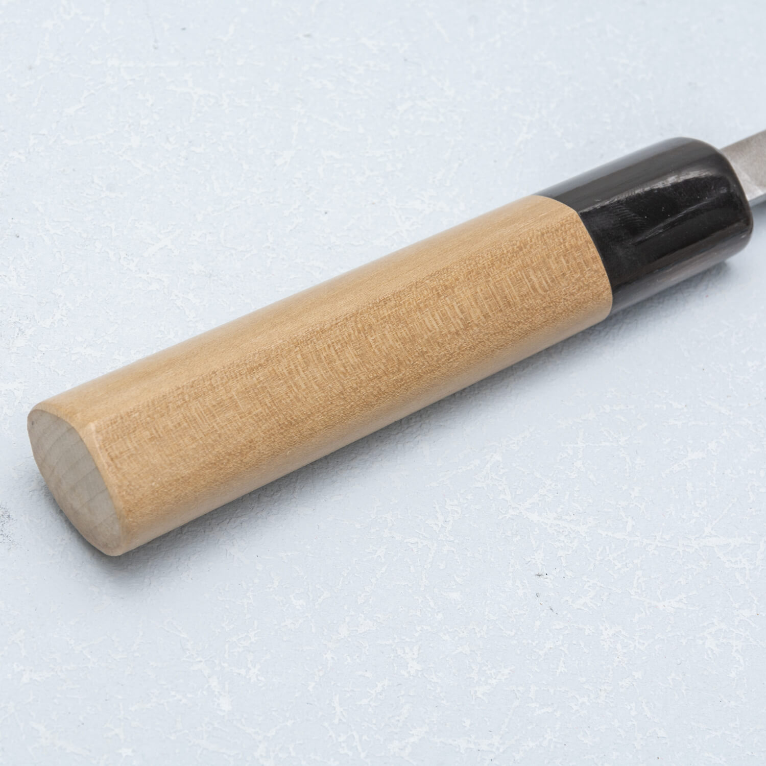 Het D-vormige Wa handvat, elegant en functioneel, is ovaal met een platte rand, waardoor het hout een 'D'-vorm krijgt. Dit ontwerp biedt een betere grip voor rechtshandige koks. Dit mes is minder geschikt voor linkshandige gebruikers.