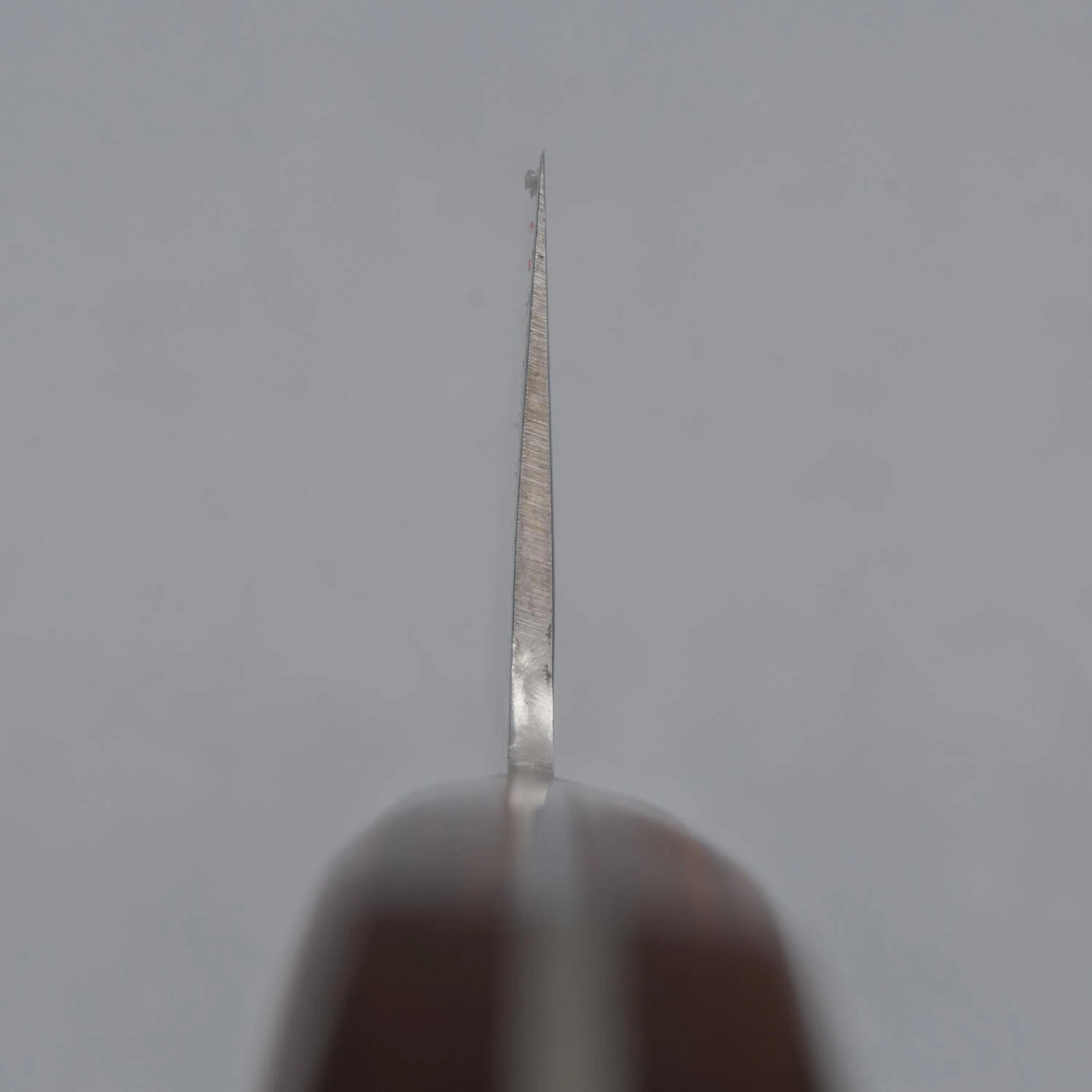 De scherpte van een mes wordt bepaald door het staal en de slijpwijze. Dit mes is gemaakt van Japans VG-10 staal. Onder de kenners staat deze staalsoort bekend als één van de beste staalsoorten voor messen. VG-10 staal is hard en blijft lang scherp. Door de hoge hardheid kan het mes extra scherp geslepen worden (op 15 graden). Ook kan het lemmet extra dun gemaakt worden, waardoor het met groot gemak snijdt.