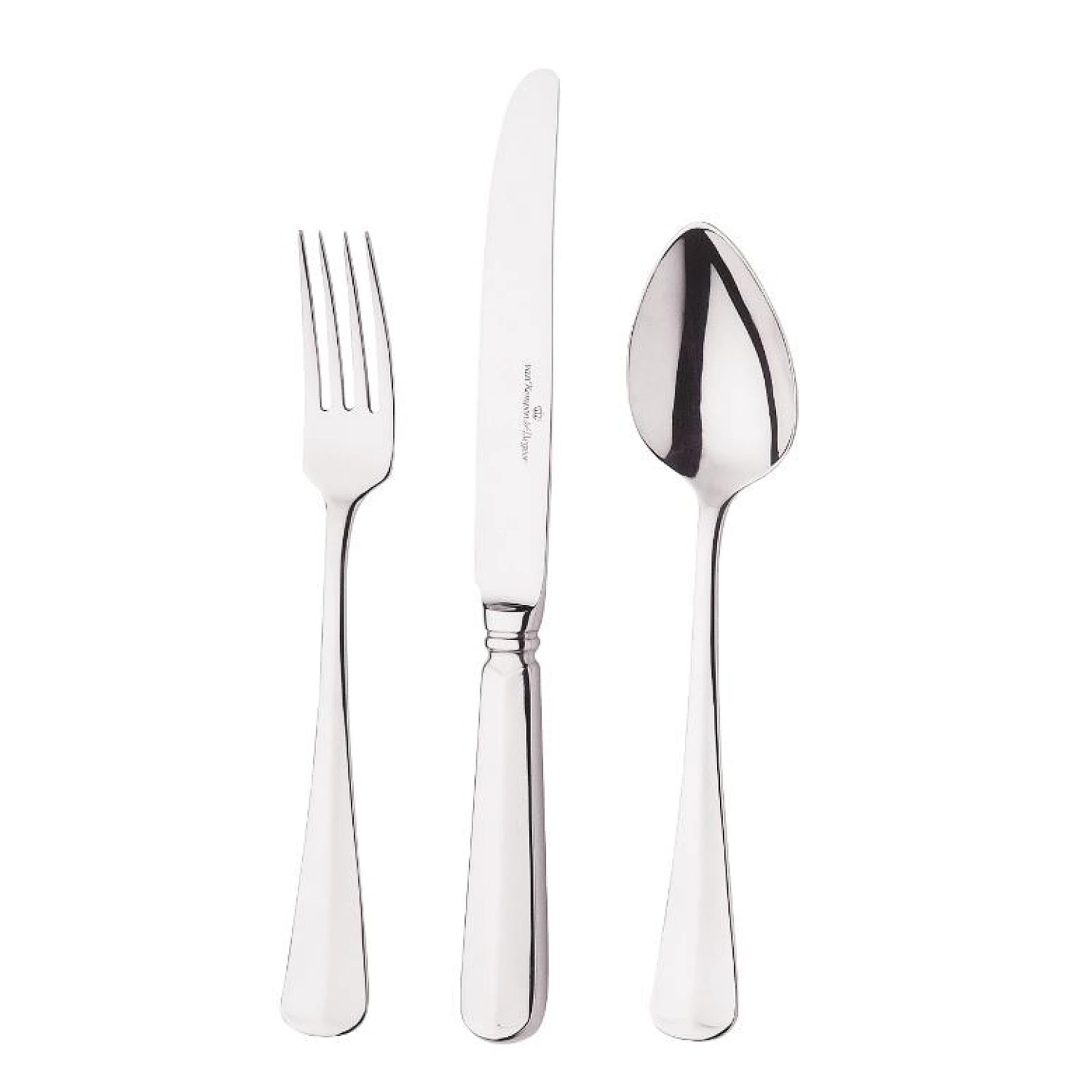 bestaat uit een vork, mes en een lepel allemaal met een verzilverde
