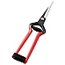 Om het handvat zit een rubberen bescherming. Dit zorgt voor een betere grip en een fijner knipgevoel. Aan de onderkant zit een haakje waarmee je de snoeischaar op "slot" zet.