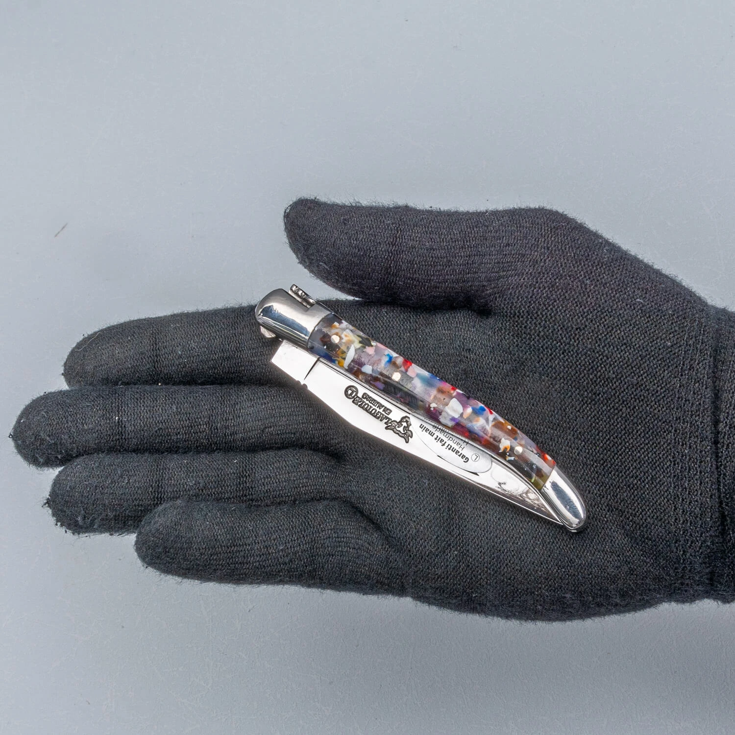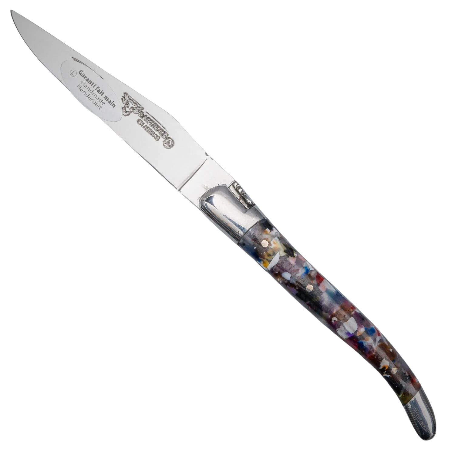 De zakmessen van Laguiole en Aubrac zijn stuk voor stuk kunstwerkjes. Elk mes wordt volledig met de hand gemaakt, geslepen en gegraveerd door dezelfde persoon. Elk van de 14 messenmakers hebben hun eigen kenmerk die ze graveren op de bovenkant van het lemmet en in de rug van het handvat.
