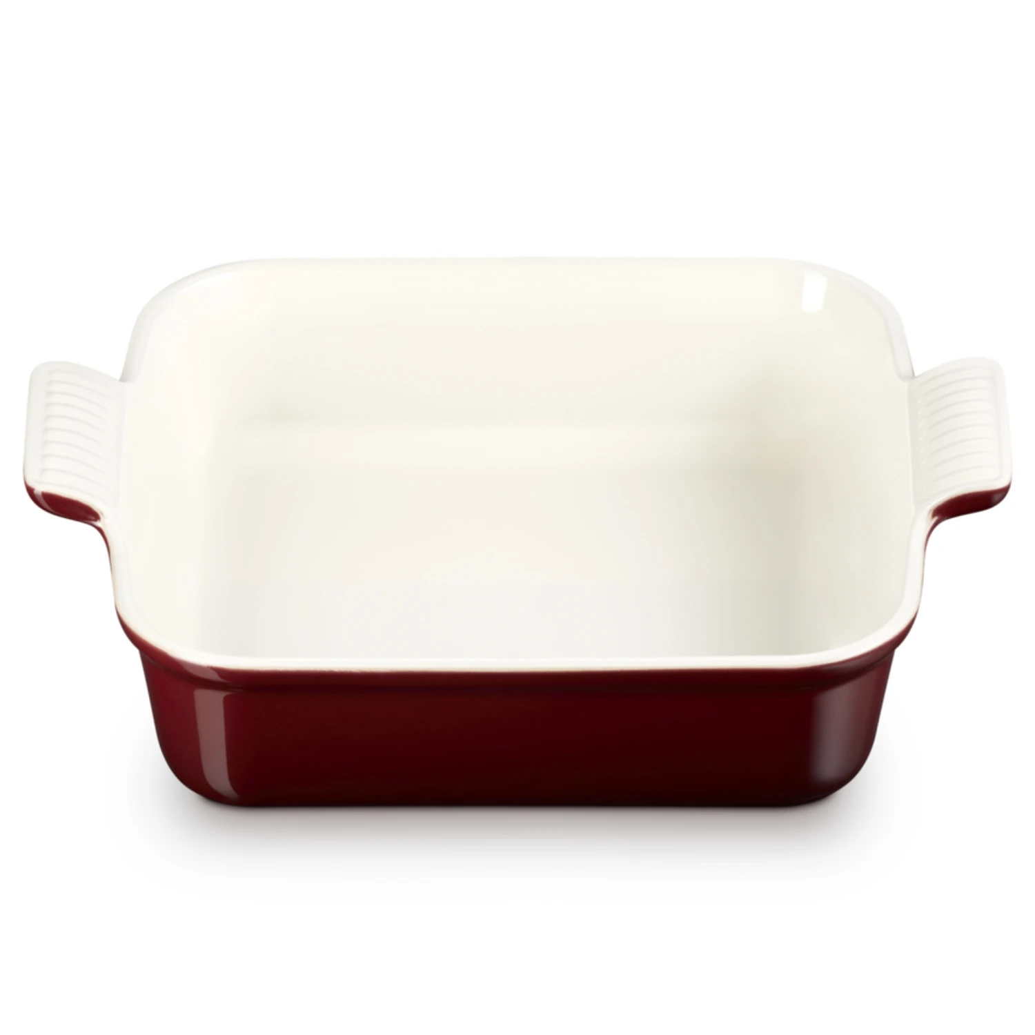 Deze vierkante ovenschaal van Le Creuset, uitgevoerd in de nieuwe kleur Garnet, brengt een warme en chique rode tint naar je keuken. De schaal is gemaakt van hoogwaardig aardewerk en afgewerkt met een keiharde glazuurlaag. Hierdoor blijft het oppervlak mooi glanzend, schilfert het niet en blijft het krasvrij, zelfs bij intensief gebruik.