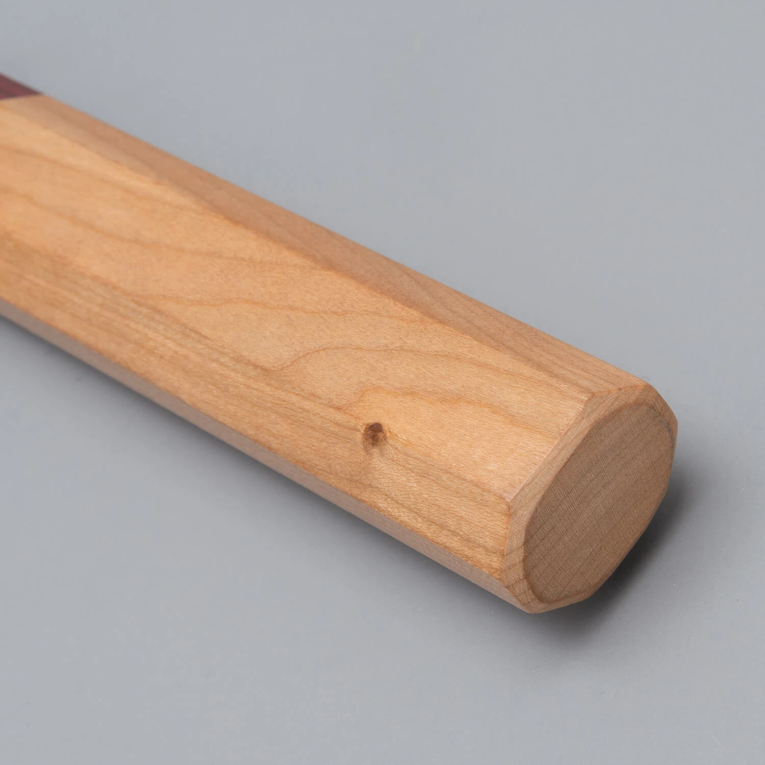 Het handvat is gevormd als achthoek (octagon) en gemaakt van Esdoornhout met aan de voorkant rood pakkahout.