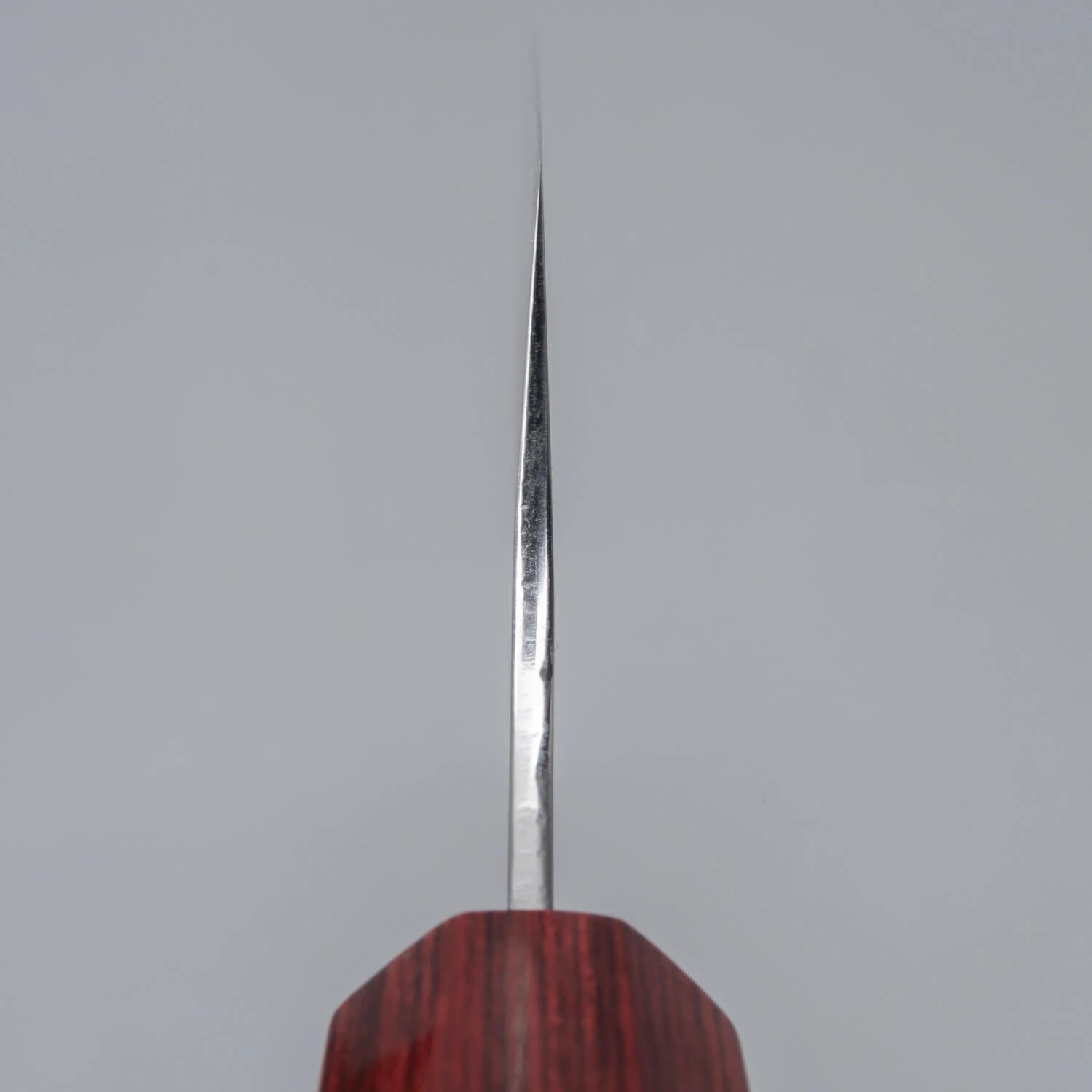Het mes heeft een dun profiel (geen laser) waardoor het moeiteloos snijdt. Zoals we gewend zijn bij Makoto is de afwerking subliem, zo is de bovenkant van de achterkant van het mes gepolijst. Als finishing touch is de Kanji in het mes gebeiteld.
