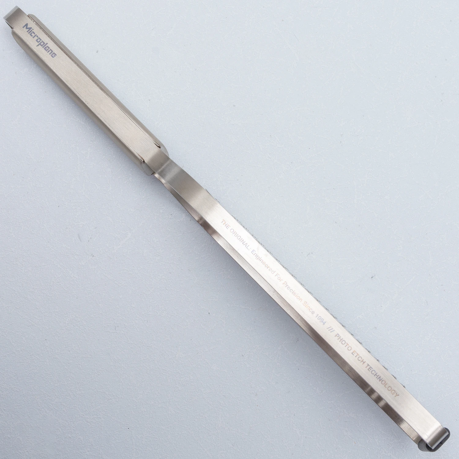 De Microplane raspen staan bekend om hun uitzonderlijke scherpte en gebruiksgemak. Deze grove rasp is gemaakt van hoogwaardig chirurgisch 18/10 roestvrij staal en met precisie gelaserd, waardoor hij langdurig vlijmscherp blijft. Het roestvrijstalen handvat ligt prettig in de hand en geeft stabiliteit tijdens het raspen. Voor extra veiligheid wordt een kunststof beschermkap meegeleverd, zodat je de rasp zorgeloos kunt opbergen. Bovendien is het mogelijk om de rasp te laten graveren, bijvoorbeeld met een naam of logo, wat hem ook een persoonlijk cadeau maakt. Of je nu thuis kookt of in een professionele keuken werkt, Microplane is de betrouwbare keuze.