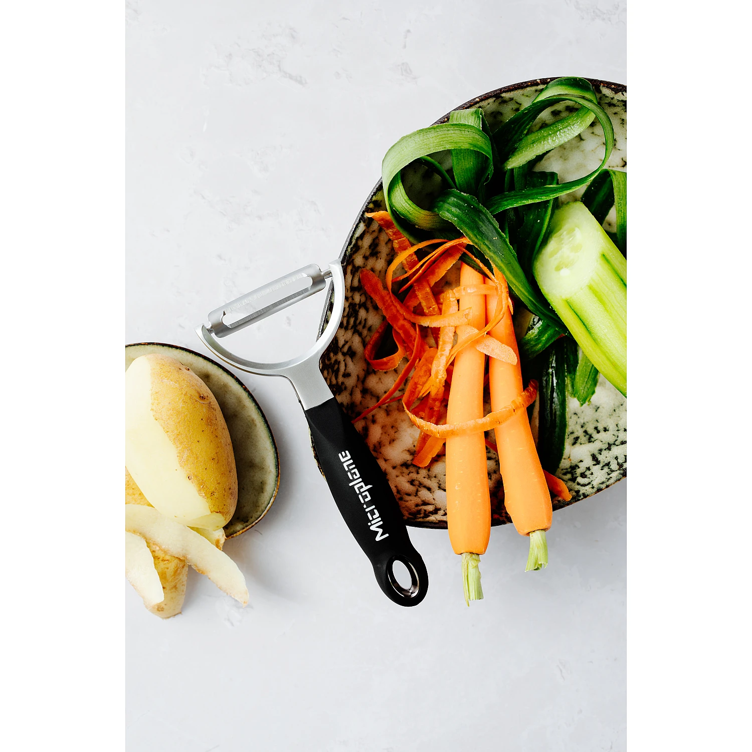 Fijne dunschiller van Microplane, met dubbel geslepen lemmet. Perfect voor fruit en groente soorten met schil zoals: aardappel, wortel, pastinaak en veel meer