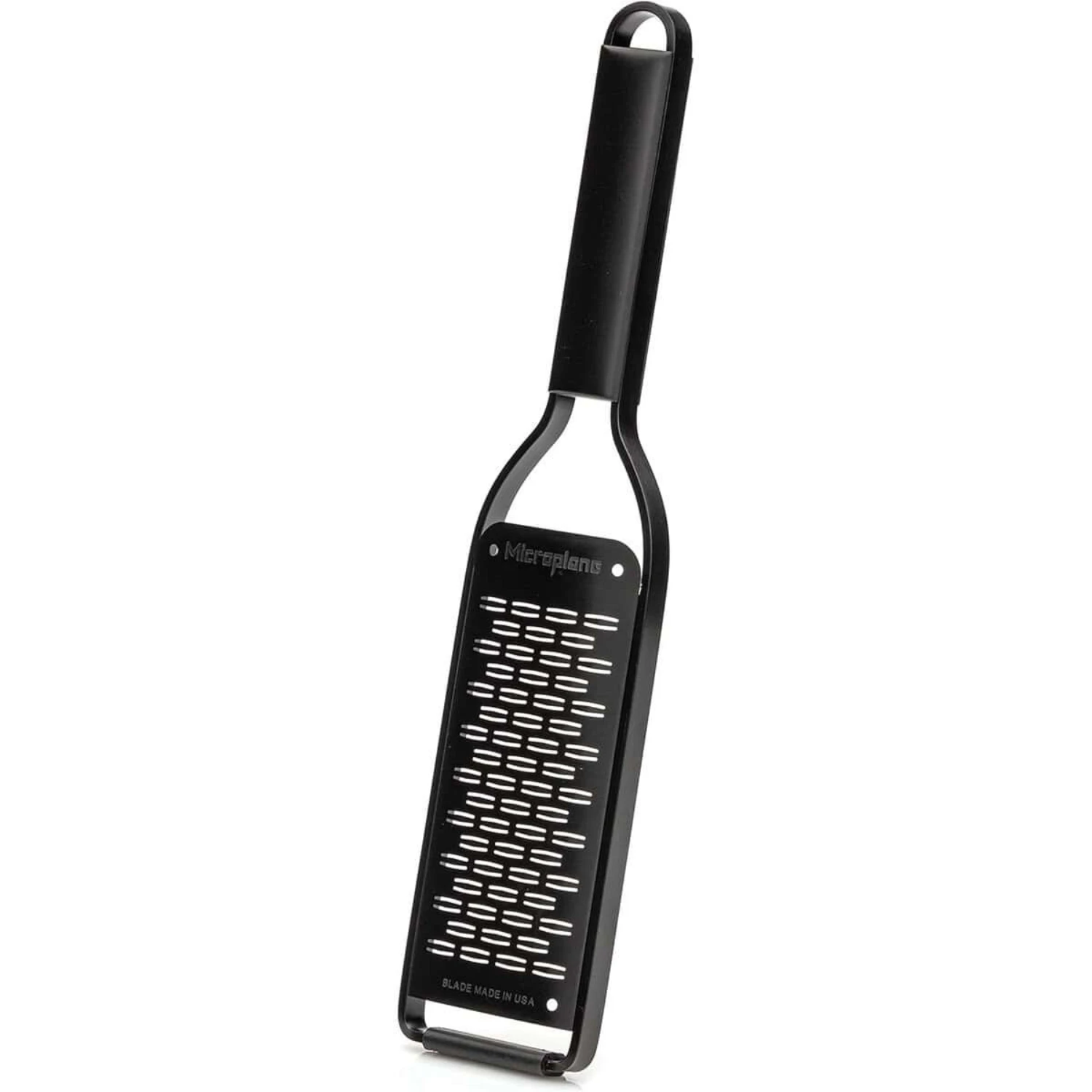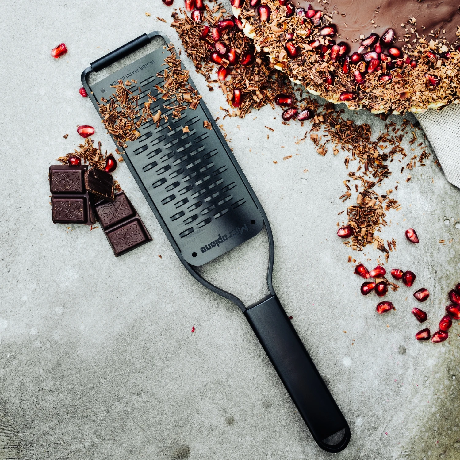 Deze Microplane ribbon rasp combineert luxe uitstraling met ultiem gebruiksgemak. Uitgevoerd in een volledig zwart stalen design is het een echte blikvanger in de keuken. Het handvat kan bovendien gegraveerd worden met een naam, tekst of logo. Daarmee maak je van deze rasp niet alleen een onmisbaar keukengereedschap, maar ook een bijzonder en persoonlijk cadeau.