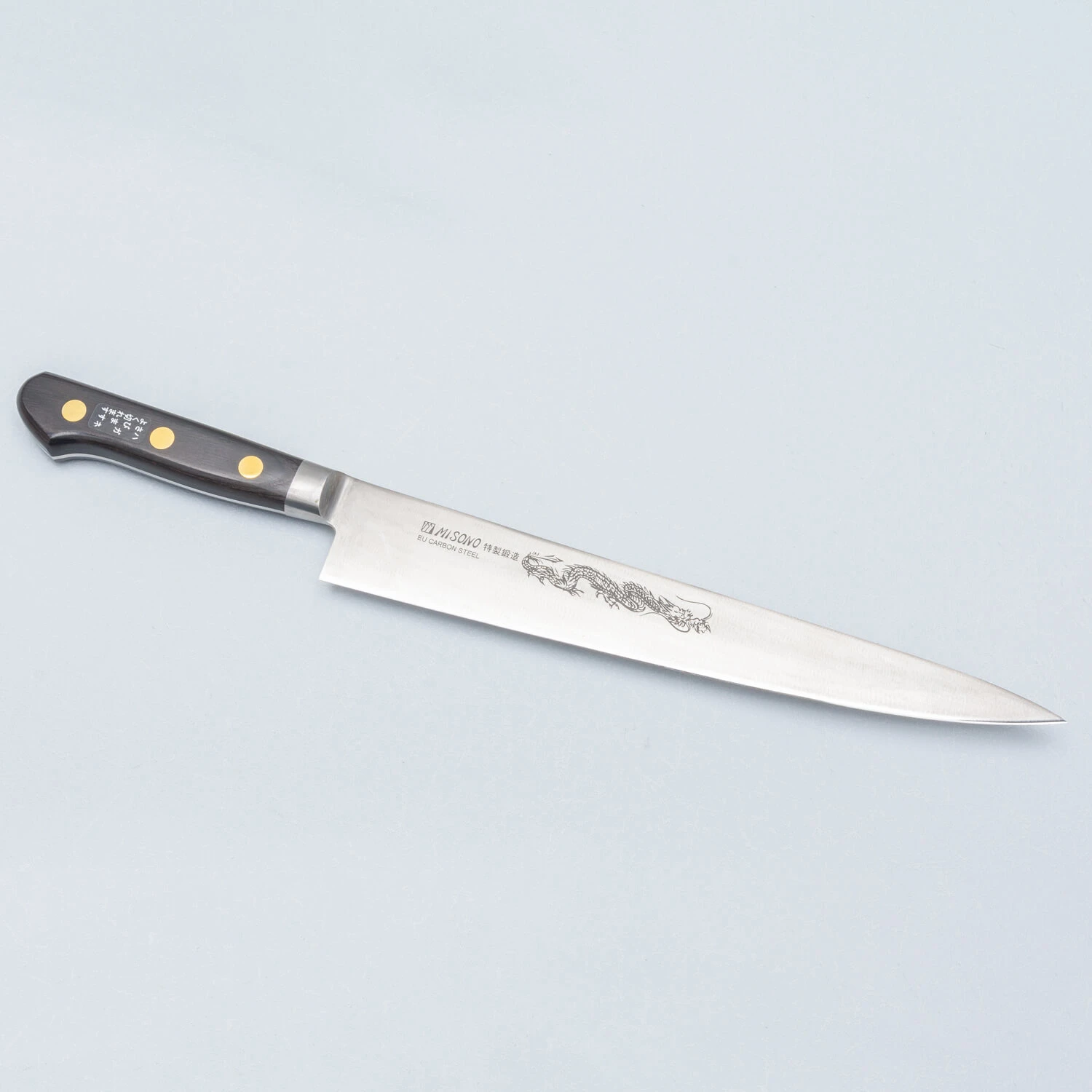 De Sujihiki is de Japanse variant van een Europees vleesmes. Met het lange en smalle lemmet snijdt je moeiteloos de mooiste plakjes vlees of sushi/sashimi. Dit mes is tweezijdig geslepen. Let wel op dat je met dit mes niet hakt of wrikt. Zoals met elk goed Japans mes is een goede snijtechniek belangrijk.