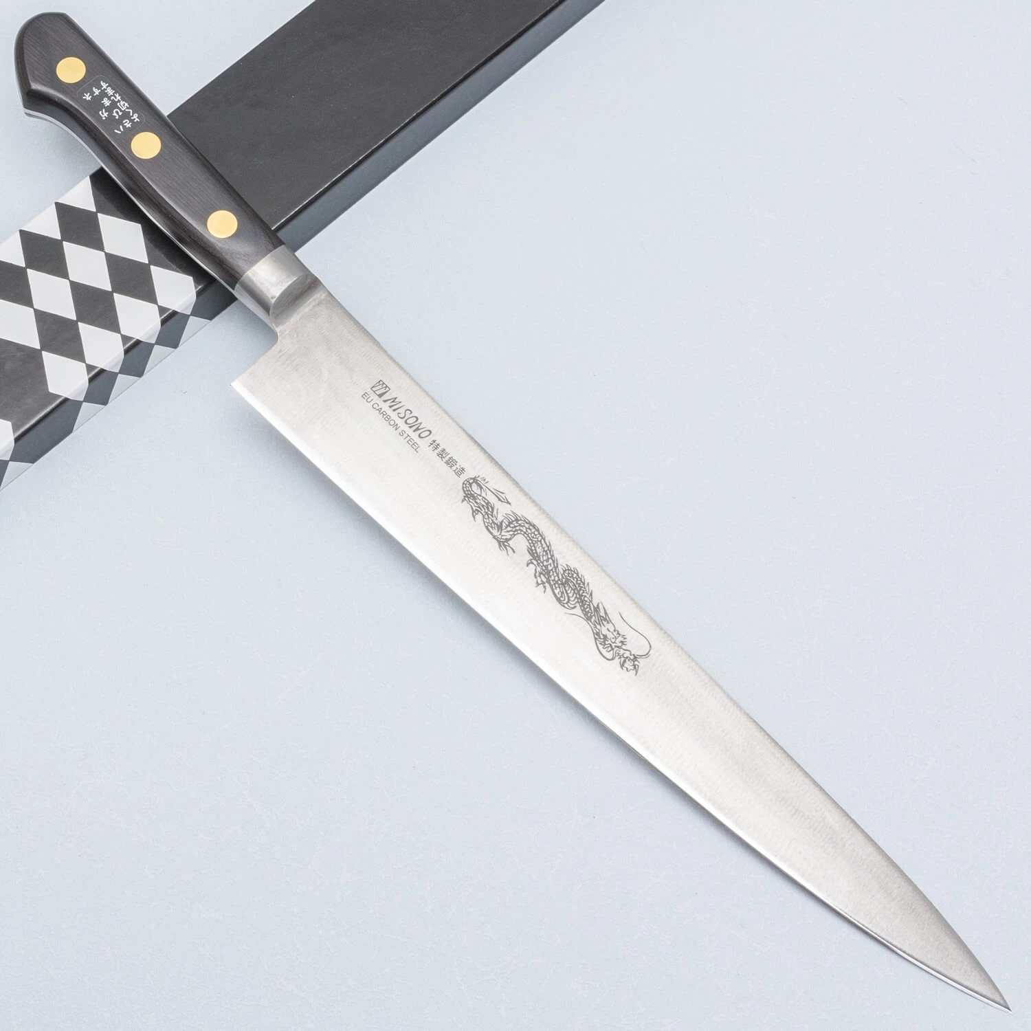 De Carbon serie van Misono zijn gemaakt van staal met een hoog carbongehalte uit Zweden dat bekent staat om zijn puurheid. De Misono carbon messen worden met de hand geslepen op een 70/30 verhouding. Dit houdt in dat één kant van het mes rond de 10-12 graden wordt geslepen en de andere kant rond de 20 graden. Dit zorgt ervoor de het staal minder snel last krijgt van bramen en bot wordt.