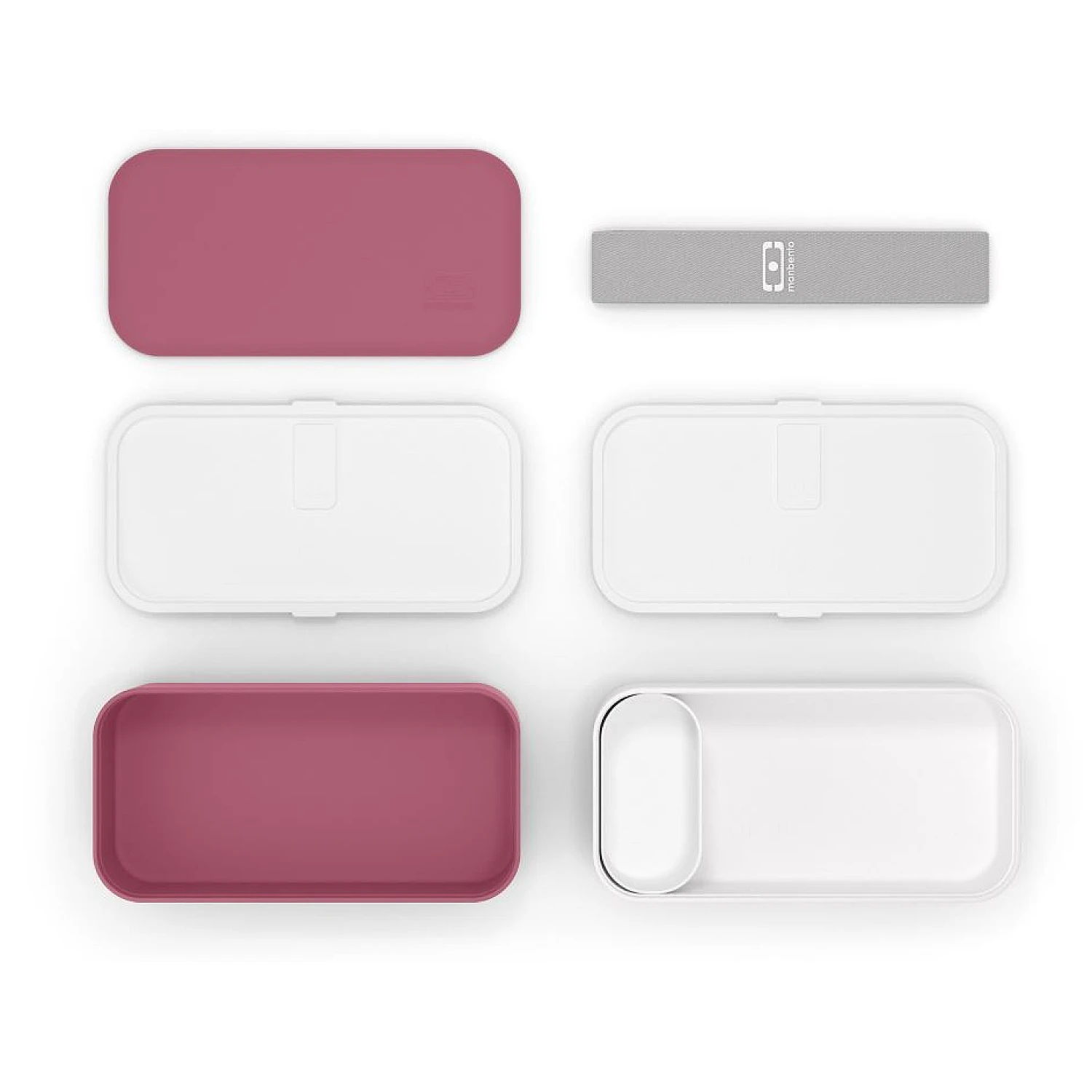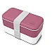 Stijlvolle donkerroze met witte lunchbox ontworpen door het Franse merk Monbento. Hij is dubbellaags en heeft twee lekbestendige gedeeltes, zo kun je met gemak je pasta of rijst mee nemen.