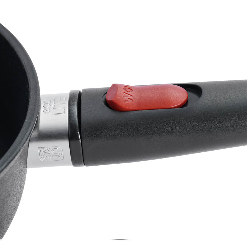Een extra functie van de Woll Eco Lite QXR pannen is de afneembare handgreep, ingenieus gemaakt van 50% hernieuwbare materialen waaronder houtmeel. Het is zeer duurzaam en ziet er beter uit dan plastic handgrepen.