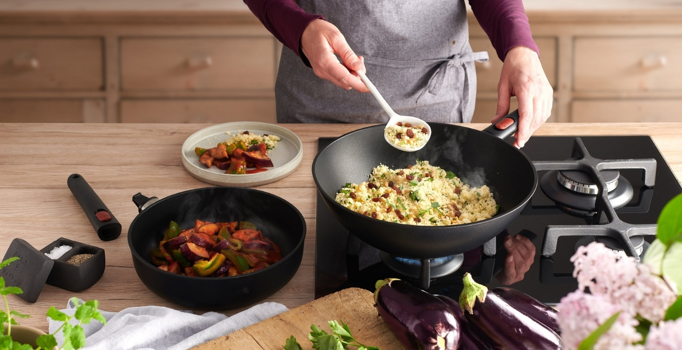 Ook de vorm van de koekenpannen en pannen heeft een nieuw ontwerp, met een nieuwe rand zodat er niets verloren gaat als je bijvoorbeeld saus afgiet. Perfect als je de pan wilt optillen en sauteren zonder te morsen. Niets gaat verloren!