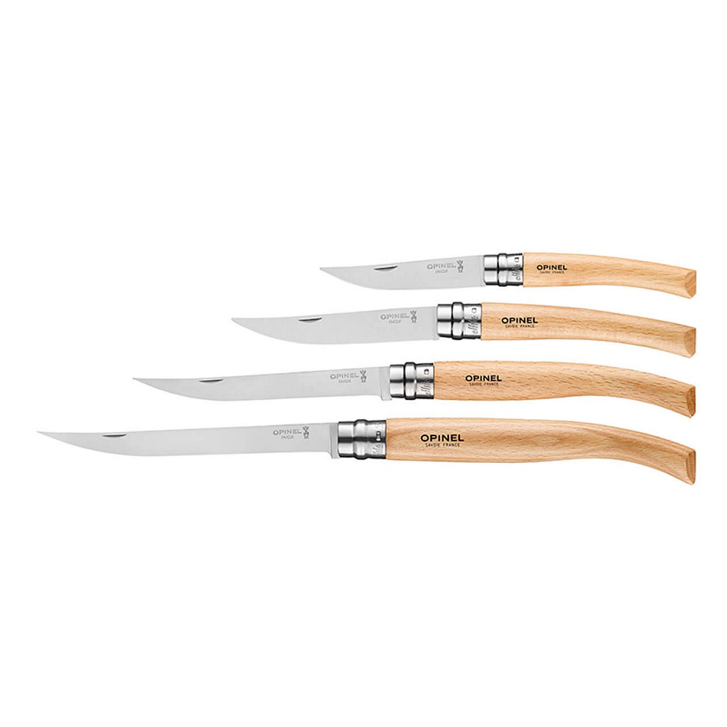 De Slimline (effile) modellen van Opinel zijn een luxe versie van het klassieke Franse zakmesje. Het handvat is wat langer en ergonomischer gevormd. Het lemmet is slanker en dunner. Hierdoor wordt het vaak door vissers gebruikt voor het fileren van vis. Maar genoeg liefhebbers die het als vervanger voor hun normale Opinel zakmes gebruiken. In het bos of gewoon aan tafel.