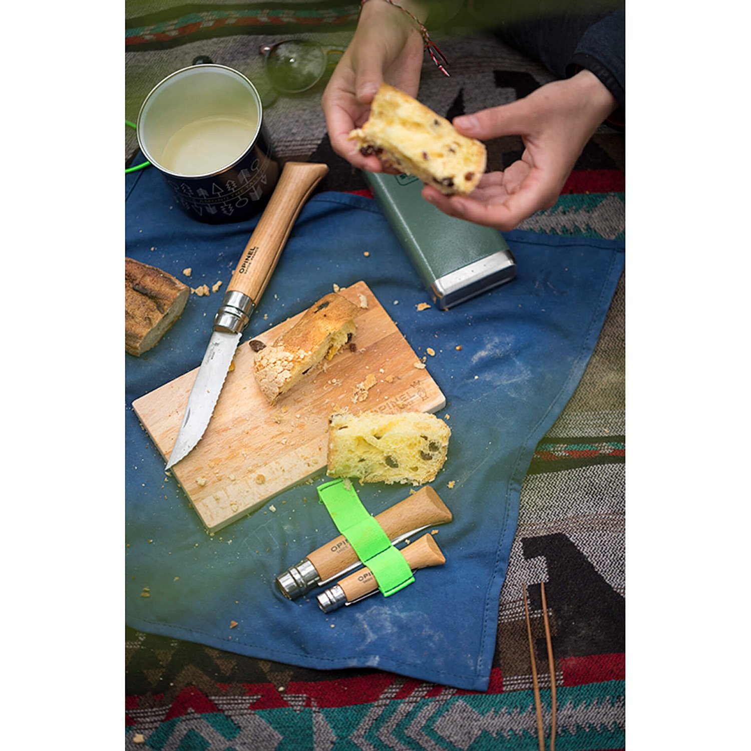 Het Opinel zakmes nr. 12 heeft een lemmet van roestvrij staal. Het mes is 12 cm lang en heeft een scherpe punt. Het handvat is gemaakt van beukenhout. Dankzij het virobloc-vergrendeling systeem kun je het mes veilig gebruiken en opbergen. Dankzij de scherpe kartels snijdt je makkelijk door brood, groenten maar ook door stevige touwen.