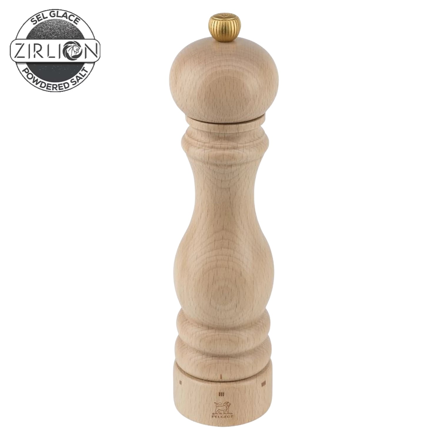 De Peugeot Paris zoutmolen is al jarenlang een favoriet onder thuiskoks en chef-koks. Met zijn tijdloze vormgeving en warme uitstraling van beukenhout past deze molen in elke keuken. Dankzij het compacte formaat van 22 centimeter staat hij stijlvol op tafel zonder veel ruimte in te nemen. De klassieke vorm wordt gecombineerd met moderne prestaties, waardoor je elke keer weer verzekerd bent van perfect gemalen zout.