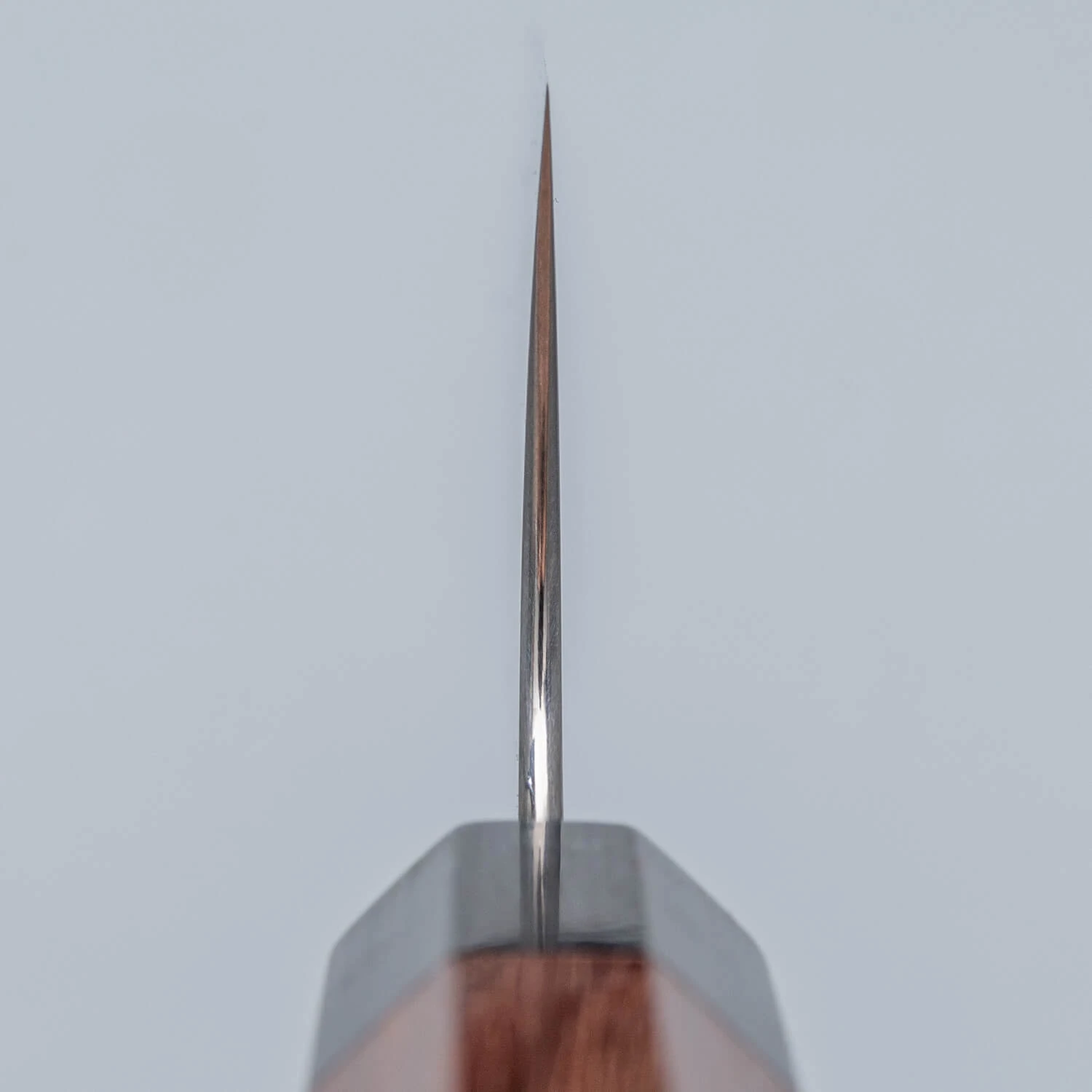Dit is de Aogami Super versie van de Kotetsu. Het lemmet is gemaakt van Aogami staal wat superlang scherp blijf. Wel is dit mes gevoelig voor roest en moet het goed onderhouden worden. Voor iemand die netjes met zijn spullen omgaat zal dit een van de scherpste messen zijn die je kunt krijgen.
