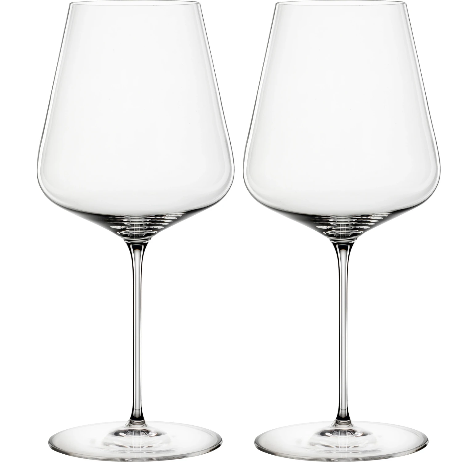 De Definition wijnglazen van Spiegelau staan bekend om hun elegante vorm en bijna gewichtloze gevoel. Ze zijn gemaakt van bijzonder dun kristalglas, waardoor ze licht in de hand liggen en het drinken van een mooie Bordeaux nog plezieriger maken. Het ontwerp is zorgvuldig afgestemd om de aroma’s optimaal te laten openen, zodat elke slok intenser en voller smaakt.