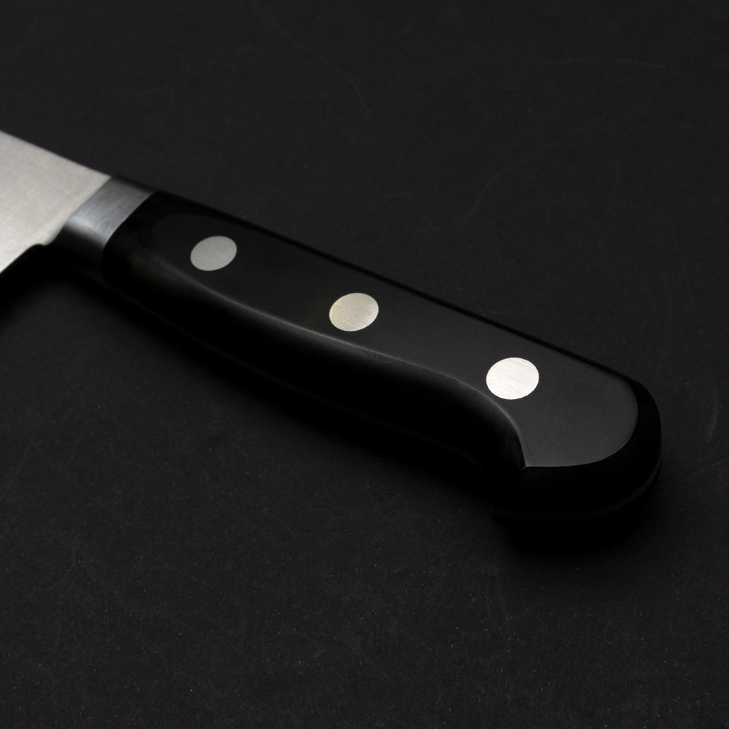 Het westerse handvat is gemaakt voelt gelijk vertrouwd aan en geeft het mes een mooie balans.