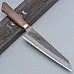 Het handvat is gemaakt van Walnoothout. Het hout heeft een hittebehandeling ondergaan waardoor het bestand is tegen vocht, water en hoge temperaturen. Het handvat heeft een westers vorm en is ook langer dan de meeste Japanse messen. Comfortabel in gebruik, zelf met grote handen.