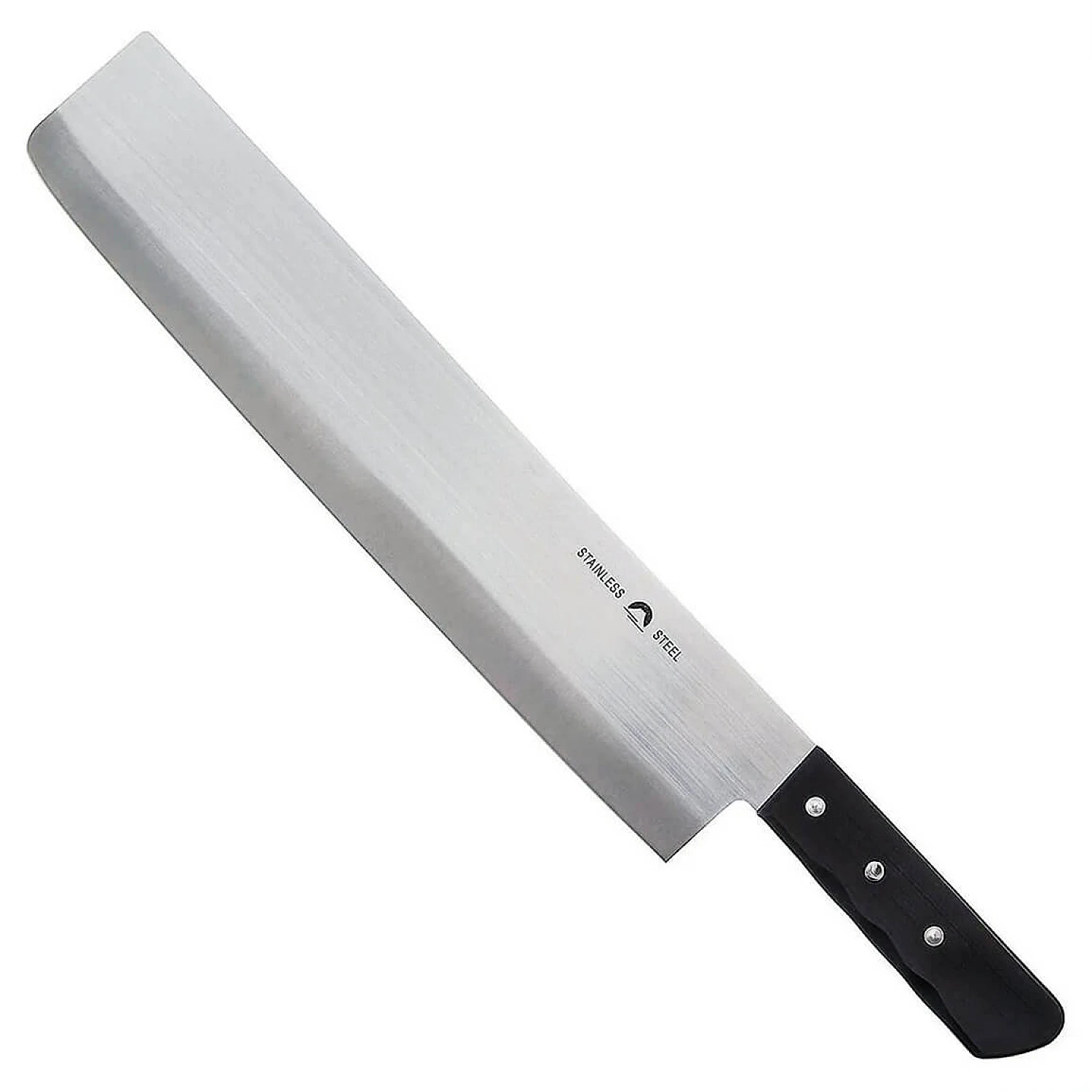 Een gigantische nakiri van Tojiro. Dit is niet de normale kwaliteit die je van Tojiro verwacht maar een goedkoop mes dat ideaal is voor het snijden van watermeloenen, grote groenten en pizza. Gemaakt van dun roestvrij staal en een simpel handvat maar daardoor extra goedkoop.