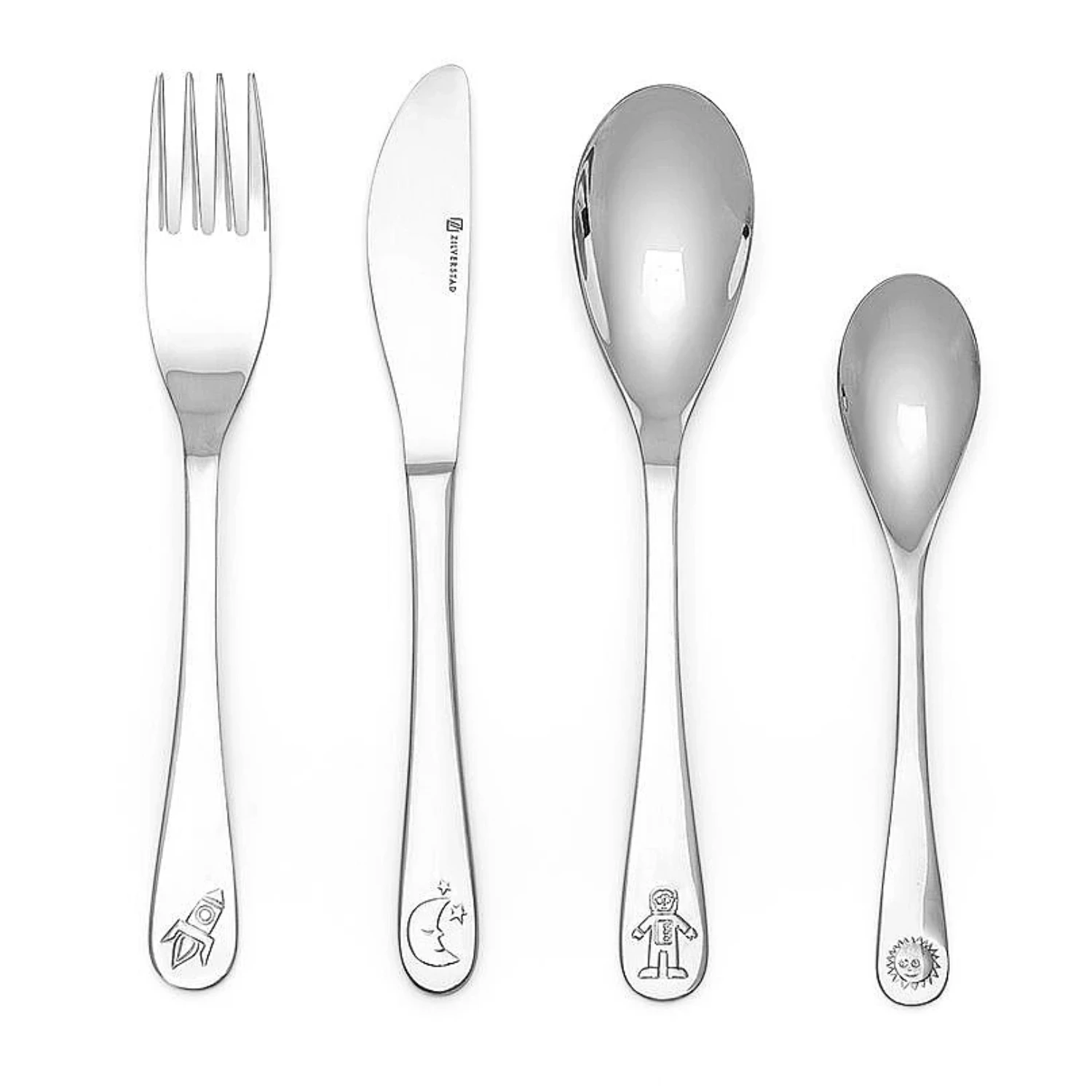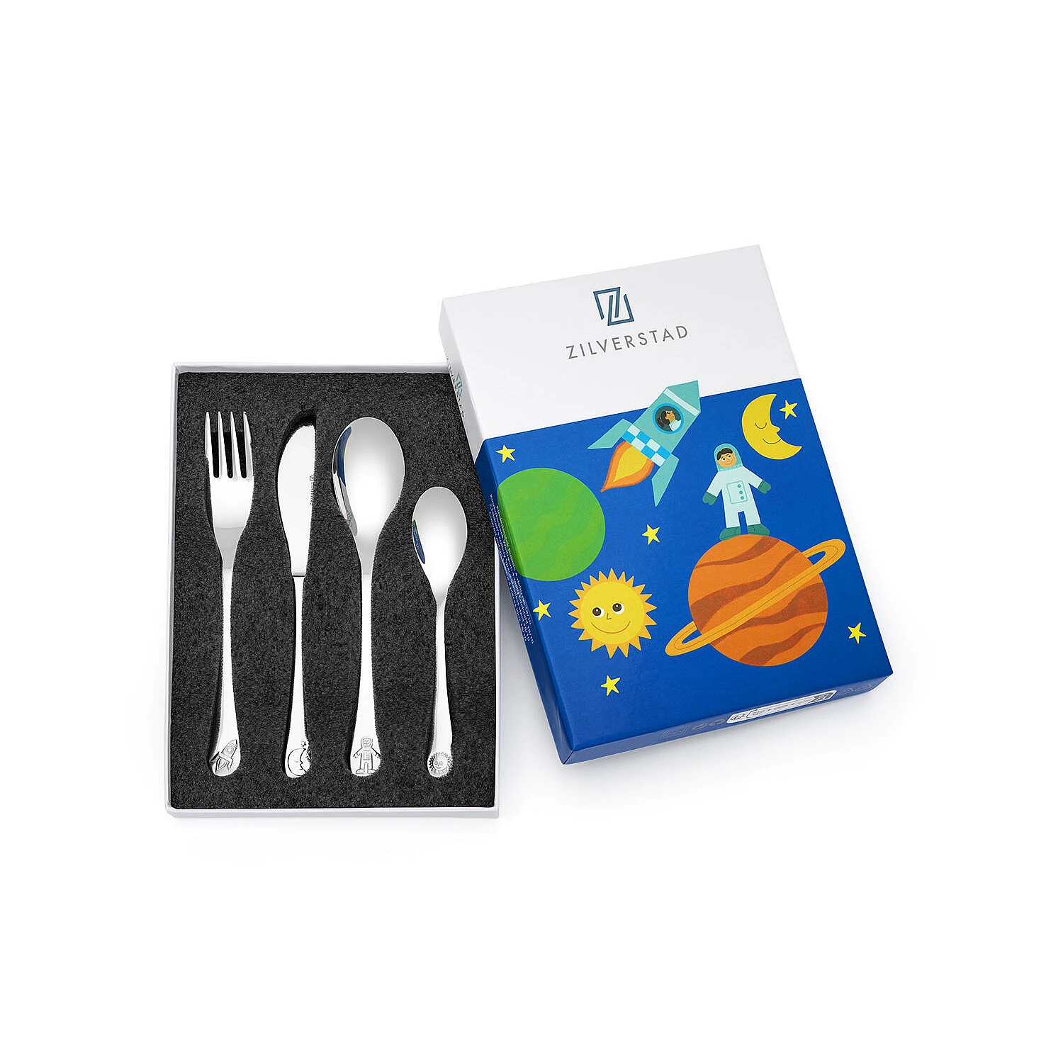 Dit leuke kinderbestekje is voor de leukste kinderen onder ons. Op ieder bestekdeel staat een plaatje dat te maken heeft met de ruimtevaart. Zoals een raket, maan, astronaut en een zonnetje. Welk kind wil hier niet mee eten!?